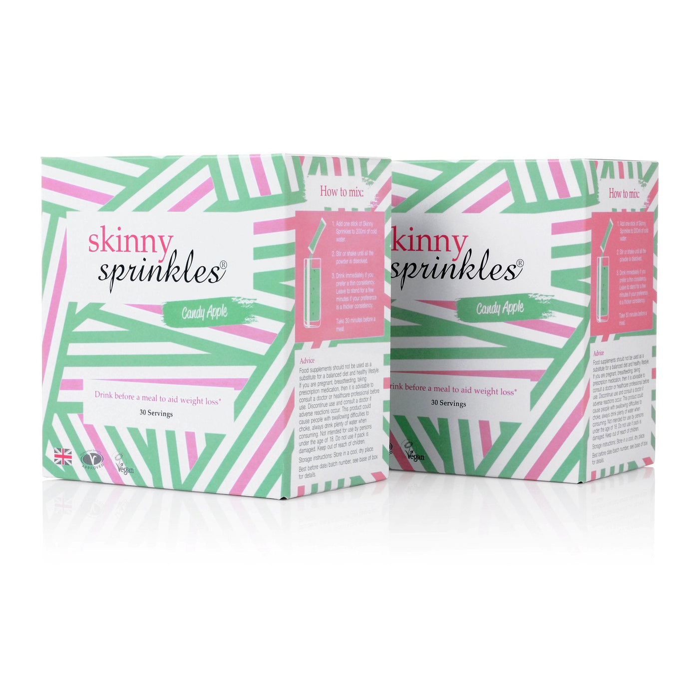 Skinny Sprinkles, Duo Pack 60 Servings - Weight Management Drink with Glucomannan - Vegan, Vegetarian Society Approved - Made in The UK - Candy Apple