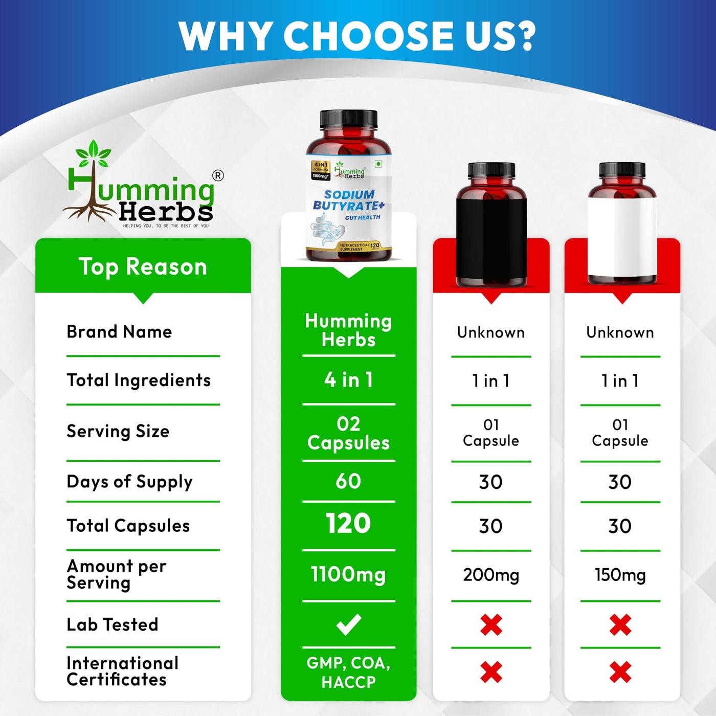 - 1100mg Per Serving Delivers 1100mg of Sodium Butyrate in every serving (2 capsules), conveniently packed for daily use.