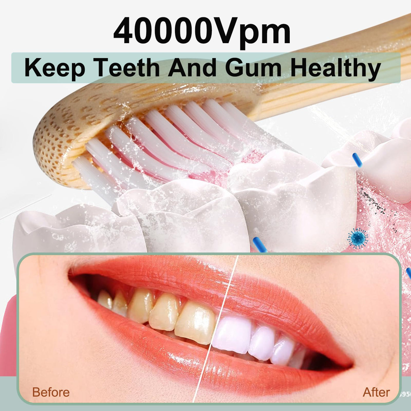 - Eco-Friendly Design: Made with sustainable bamboo, this toothbrush not only provides a superior clean but also supports environmentally-friendly choices. The bamboo toothbrush heads are replaceable, reducing plastic waste.