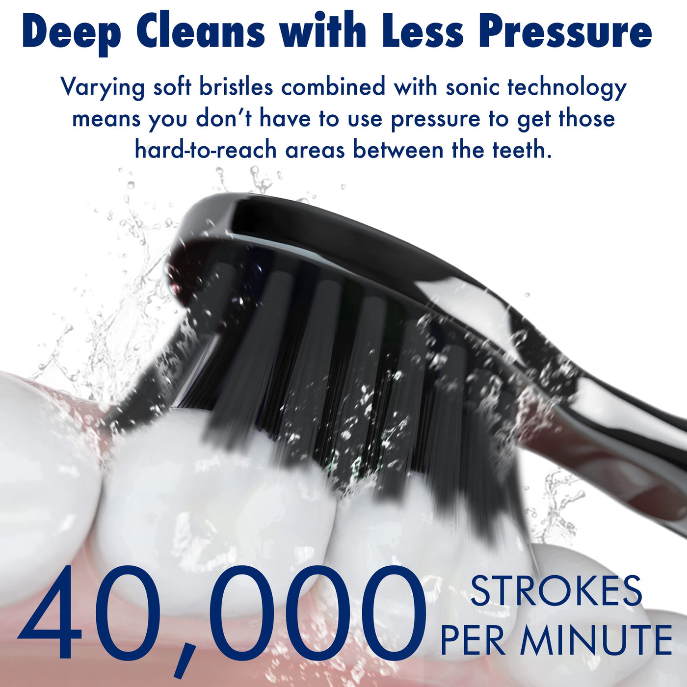 - SUPERIOR CLEANING: Embrace 40000 brush strokes per minute, ensuring a thorough clean every time. The battery toothbrush head's varying bristle lengths reach deeper areas between teeth to remove plaque