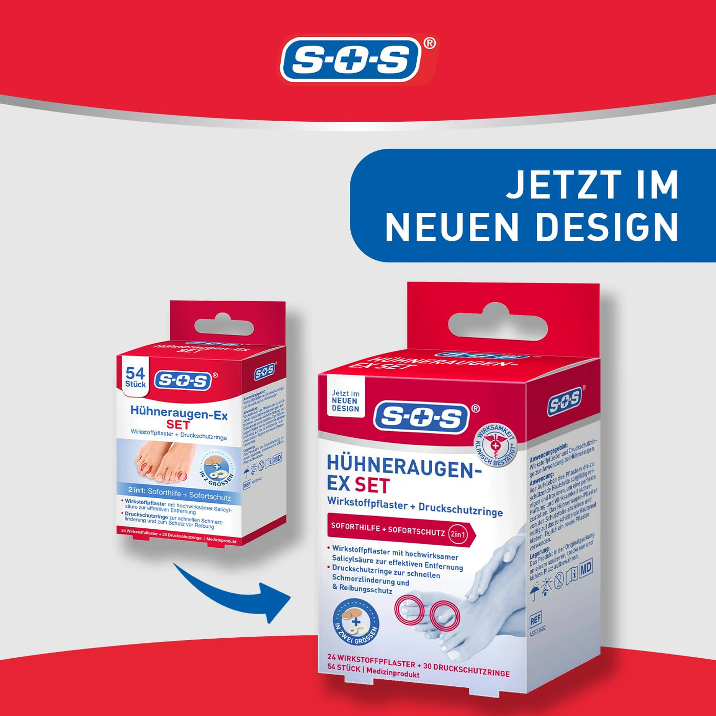 SOS corn ex set, corn plaster for immediate pressure relief, corn remover with salicylic acid, quick pain relief and protection against friction, 1 x 54 pieces