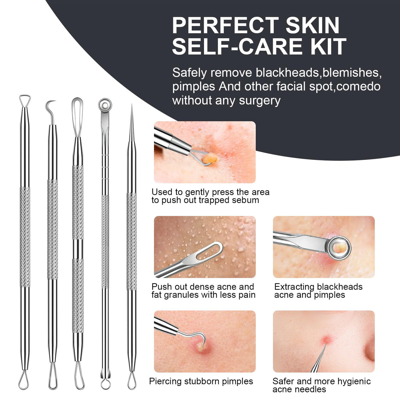 - Acne Extraction Set: 7 different tools can help you remove blackheads, acne and various blemishes, keep your face clean and smooth, and make you more confident