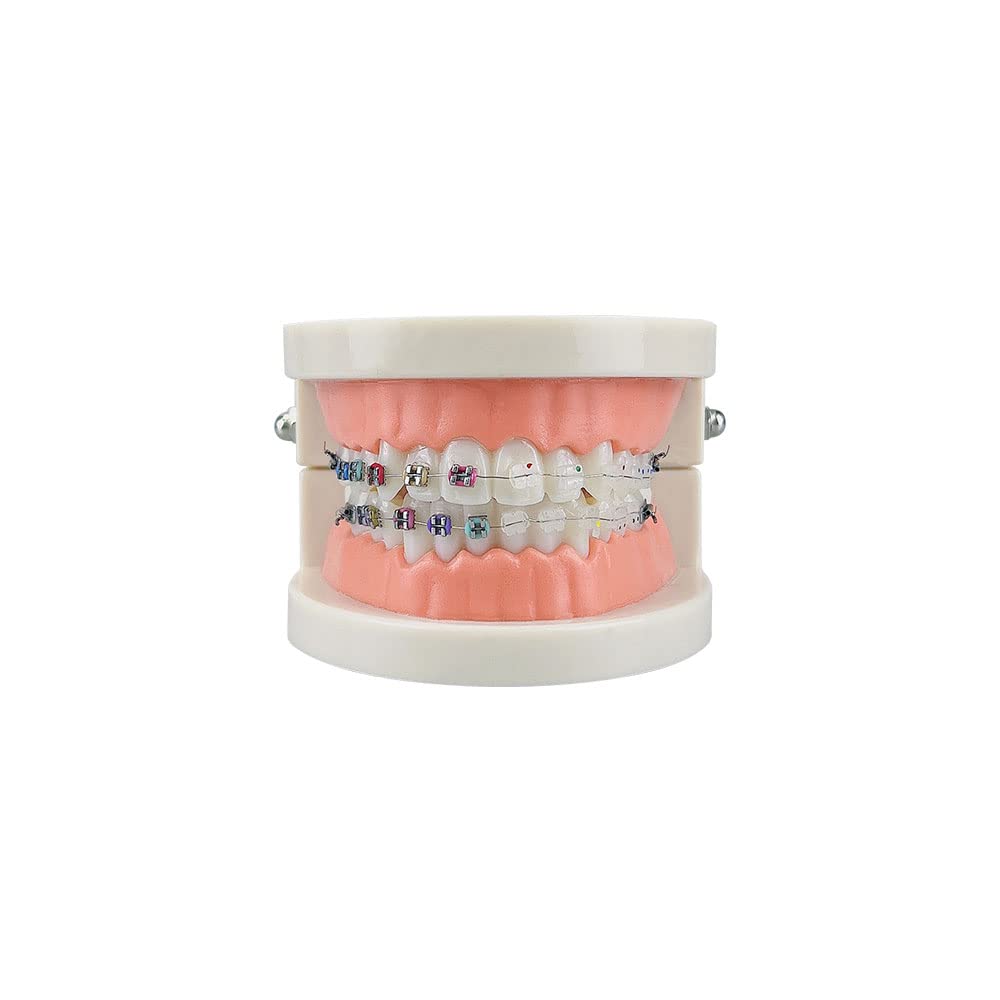 Standard Orthodontic Teeth Model, YOUYA DENTAL Demonstration Orthodontic Model Teeth Teach Study Tools with Metal and Ceramic Bracket(Red) Orthodontic Model - 1/2Metal and 1/2Ceramic