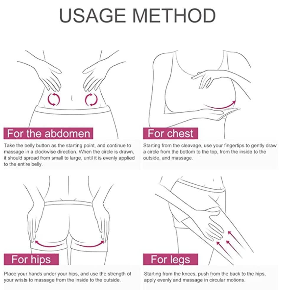 - Versatile This cream can be applied to a variety of areas such as the stomach, chest, hips and legs. It is suitable for all skin types before, after and during pregnancy, improving skin elasticity and preventing stretch marks when used regularly. The visibility of existing stretch marks can also be reduced.