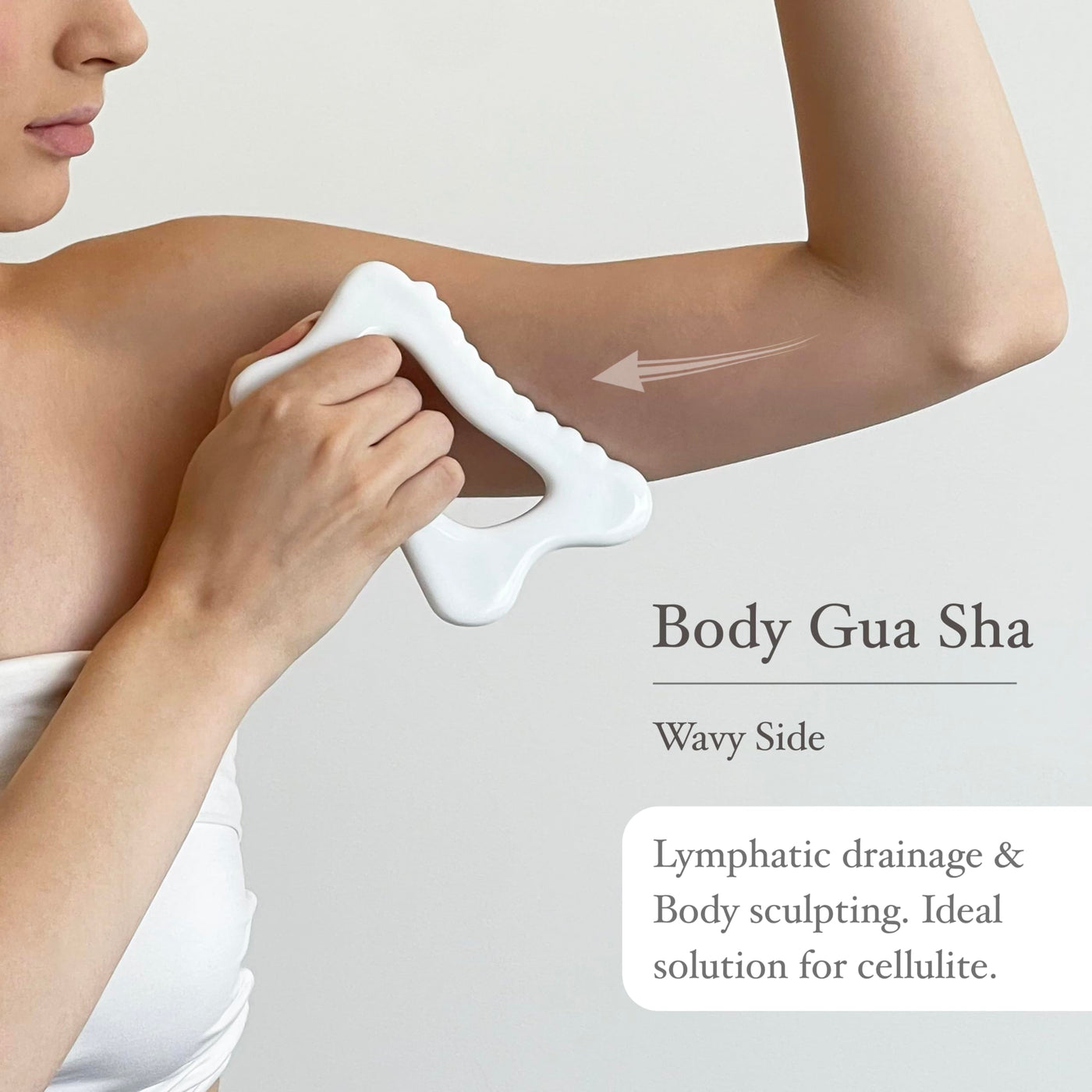 - High Quality Ceramic Material - Our body contouring tools are the masterpiece with carefully selected raw materials including finest white clay and ceramic glaze. The body gua sha massage tool is baked 3 times to make the ceramic sturdy and smooth, which means it will feel more natural and safe on your skin then the metal or stone versions.