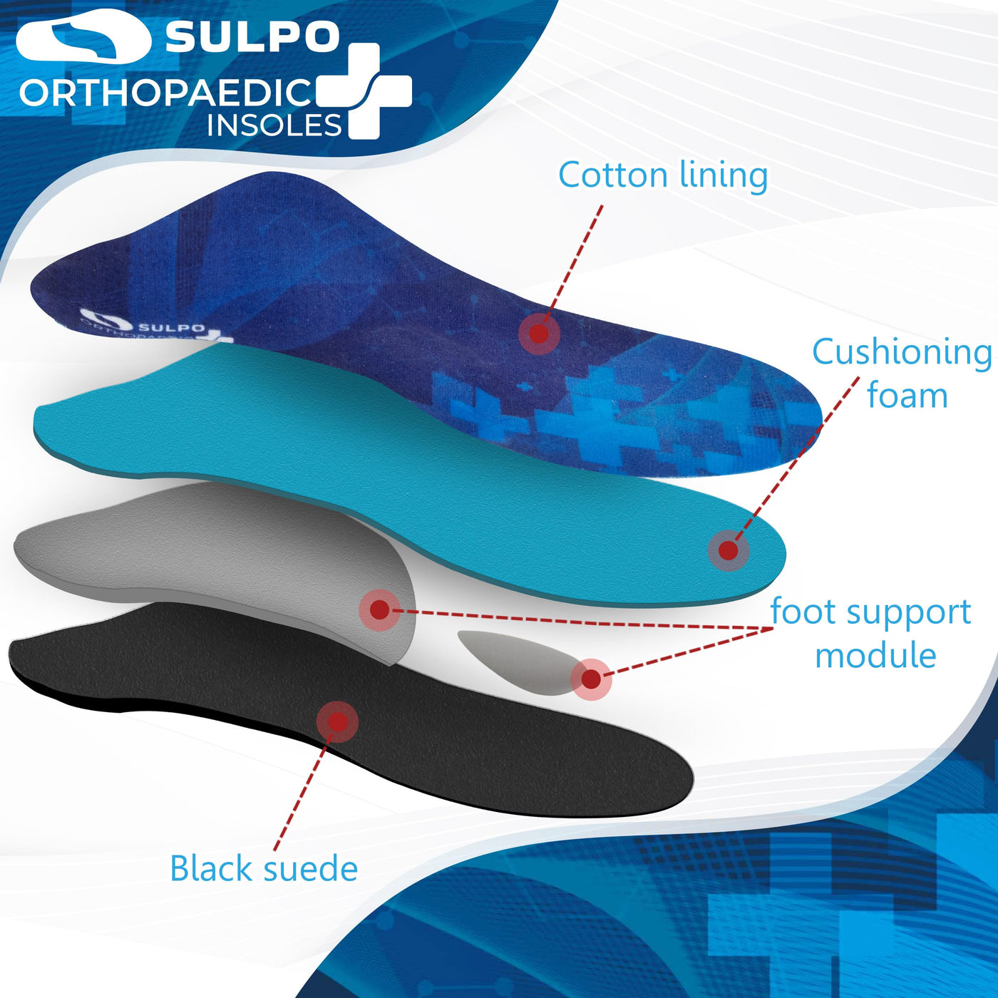 - Insoles against flat feet: Our orthopedic insoles correct flat feet and lower the arch of the joint. Perfect for use in men's orthopedic shoes or orthopedic slippers. Experience improved stability and comfort with these shoe sole insoles.