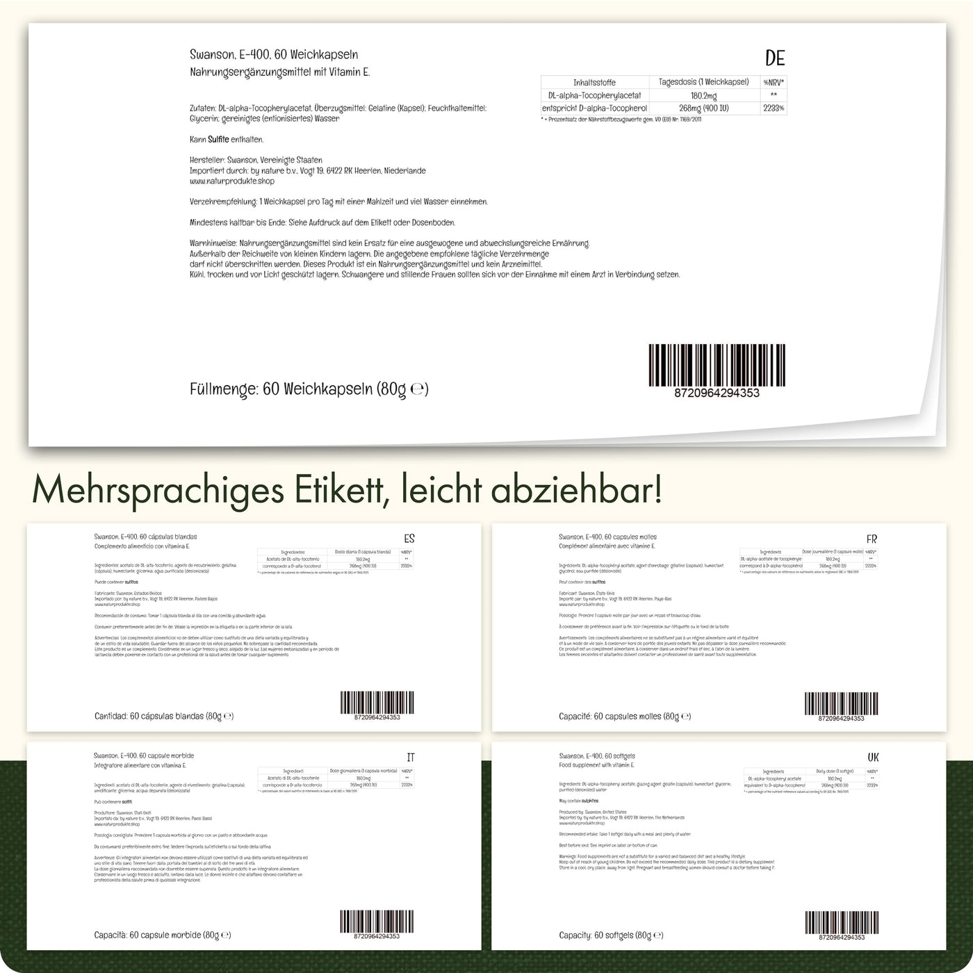 - GOOD TOLERABILITY: Swanson E-400 is characterized by good bioavailability and is suitable for a nutritionally conscious lifestyle