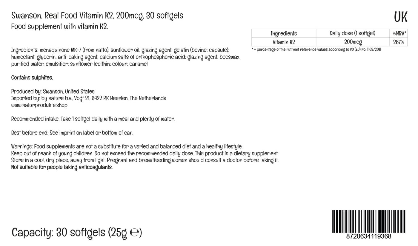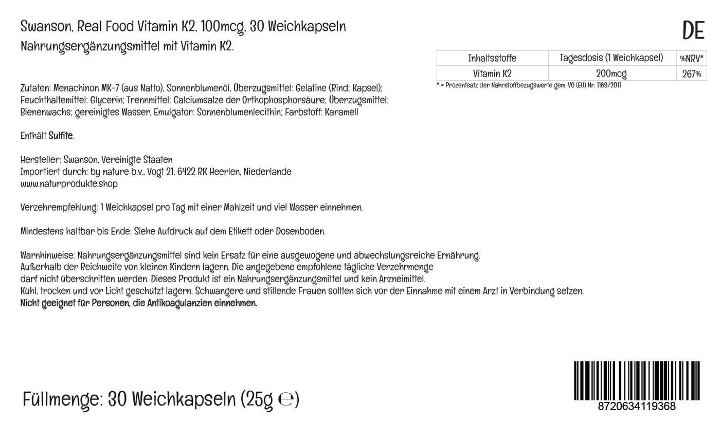 - GOOD TOLERABILITY: Swanson Real Food K2 is characterized by good bioavailability and is suitable for a nutritionally conscious lifestyle