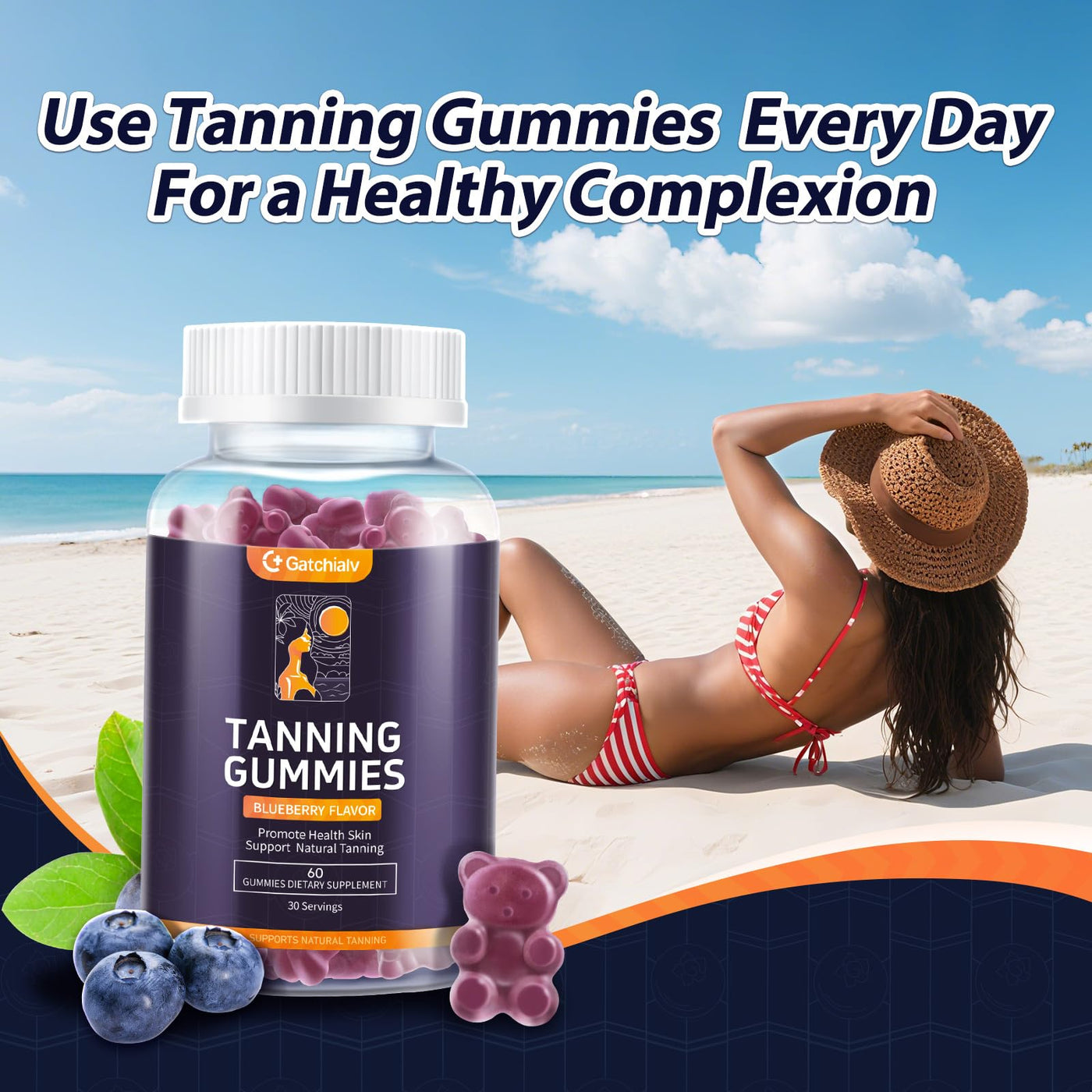 - Achieve a Gorgeous, Sun-Kissed Glow: Tanning gummies provide a simple way to get a radiant tan while keeping your skin healthy and even. They are packed with astaxanthin and carotenoids and boost melanin production for a deeper, sun-kissed tone. The tanning supplement helps create a smooth, balanced and natural-looking tan all over