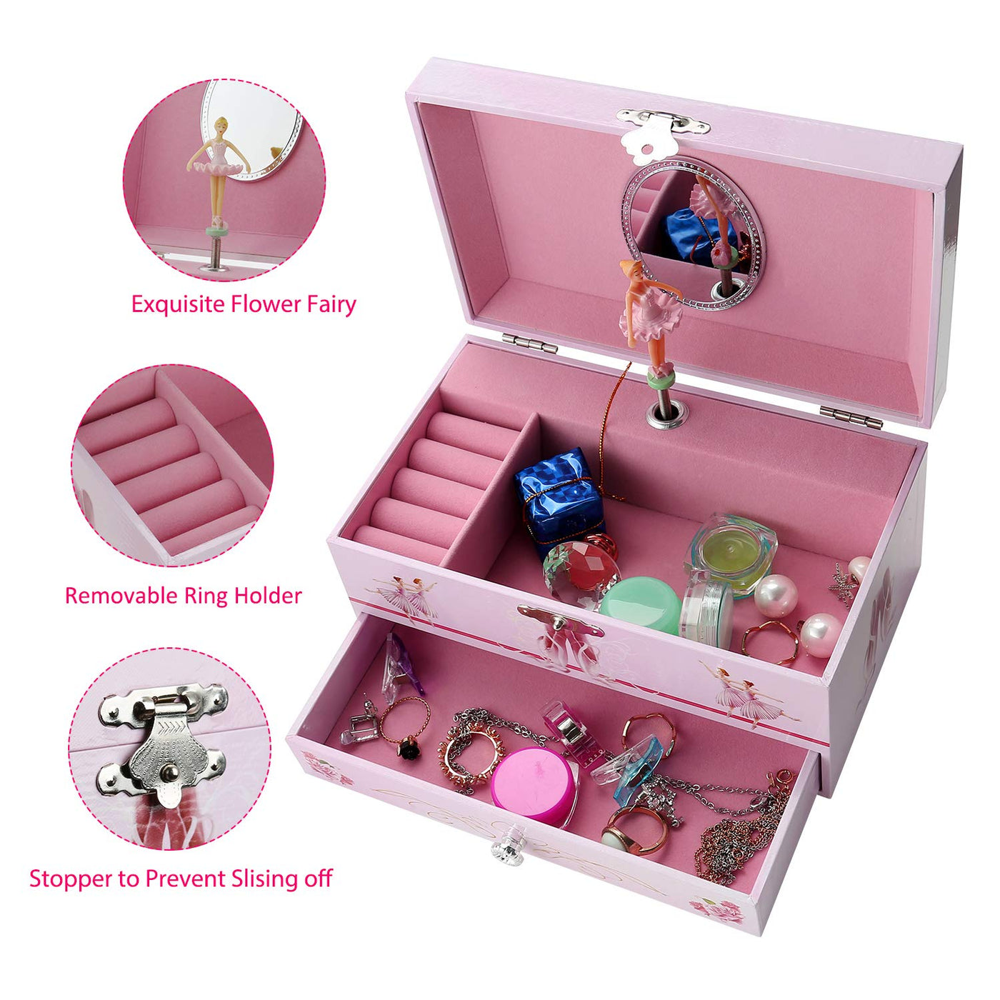 TAOPU Sweet Musical Jewelry Box with Pullout Drawer and Dancing Ballerina Girl Figurines Music Box Jewel Storage Case for Girls