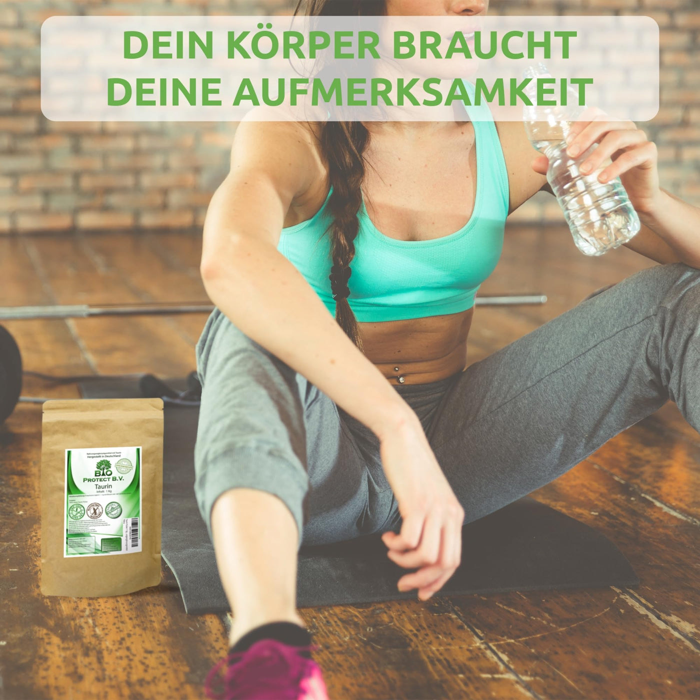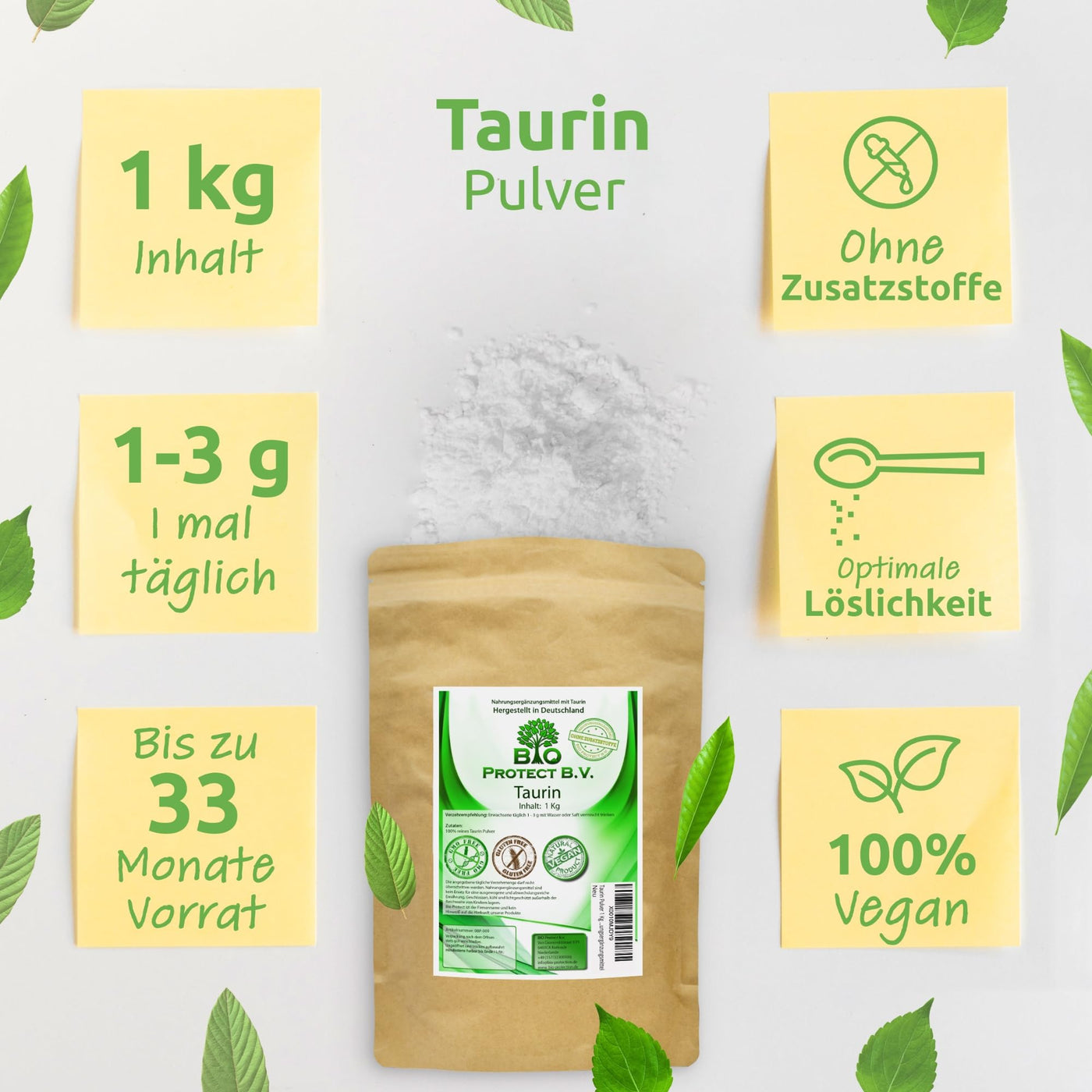 Taurine powder 1 kg 100% vegan and pure without additives! 1000g pure taurine without magnesium stearate - Bio Protect BV premium dietary supplement
