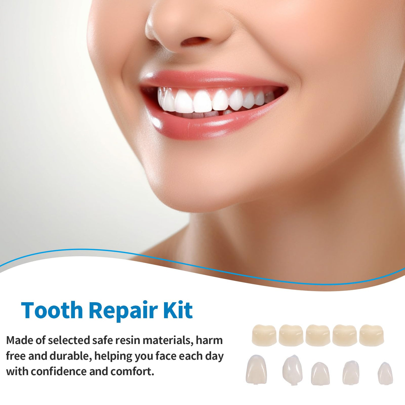 Dental temporary tooth cap, crown veneer, front and back, front and molar posterior teeth with dental repair, thermal beads, cap fillers for missing broken teeth Specifications: Quantity: Comprehensive set for the Restoration of front and back teeth Material: Durable and safe Dental quality materials. Color: Natural tooth shade. Size: Available in multiple sizes for a perfect fit. Packaging: Individually packaged for hygiene and convenience Features: Increase your dental aesthetics and functionality with our dental temporary tooth cap veneers that are a complete solution for the Restoration of the front (anterior) and back (molar posterior) provide teeth. Designed with a commitment to detail, these replicate Caps seamlessly match the look of your natural teeth and ensure a harmonious smile. Address a variety of dental problems, including missing and broken teeth, with the comfort of our Cap filler to prevent sensitivity and further damage. Experience You can use it comfortably and safely with our innovative Dental repair thermal beads that provide a stable fit for everyday use Provide activities such as chewing and talking. Whether you like the aesthetics of your want to improve your smile or regain proper dental function, our dental temporary cap veneers offer a versatile and accessible solution to help you every day with confidence and comfort to meet. Package Included: Dental Temporary Tooth Caps Crown Veneers for front or back tooth restoration dental repair Thermal beads for secure attachment. Detailed instructions for easy Attach and remove. Individually packaged for your convenience and hygiene Discover the joy of a complete smile with our dental temporary tooth cap veneers. Harness the transformative power of dental innovation and enjoy renewed confidence in your Oral health.