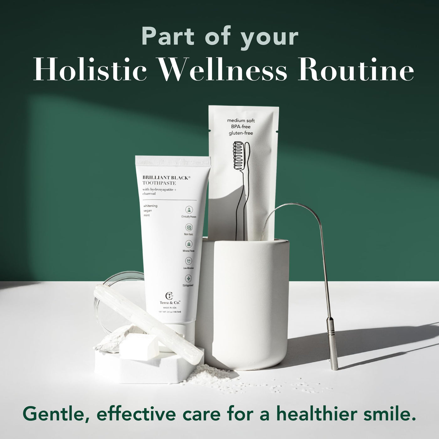 - Behind The Brush: We let dentists focus on disease while Terra & Co.'s passion is to bring you gentle oral care products to protect against early tooth decay, reduce inflammation and balance your oral micro-universe to promote the natural defense system. Terra & Co. not only supports other women entrepreneurs but also low-income and homeless women in need.