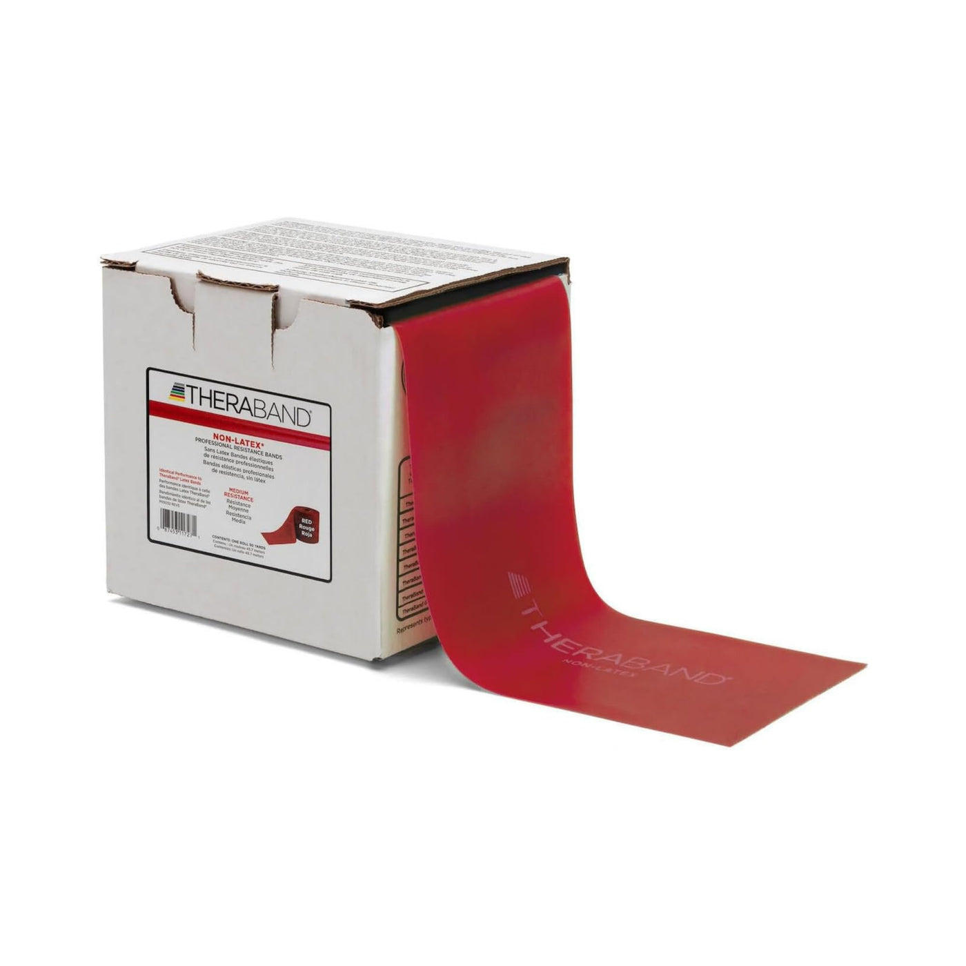 THERABAND Resistance Band 25 Yard Roll, Non-Latex Professional Elastic Stretch Bands for Upper & Lower Body Exercise Workouts, Physical Therapy, Lower Pilates, Flexibility, & Rehab, Dispenser Box Red - Medium