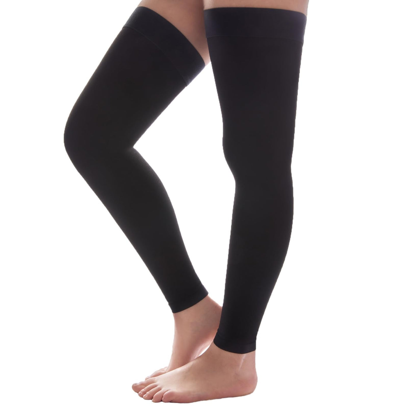 Thigh High Compression Socks Women & Men, 20-30mmHg Thigh High Compression Stockings, Compression Socks with Silicone Dot Band-Best for Varicose Veins, Swelling M Footless,Black