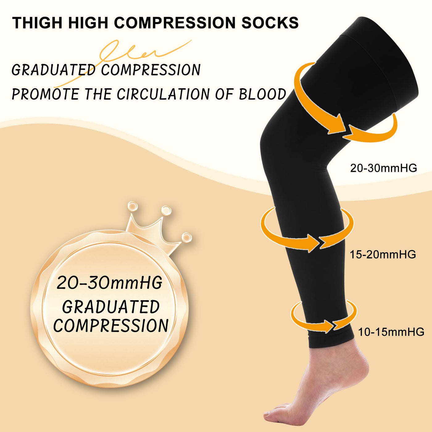 Thigh High Compression Socks Women & Men, 20-30mmHg Thigh High Compression Stockings, Compression Socks with Silicone Dot Band-Best for Varicose Veins, Swelling