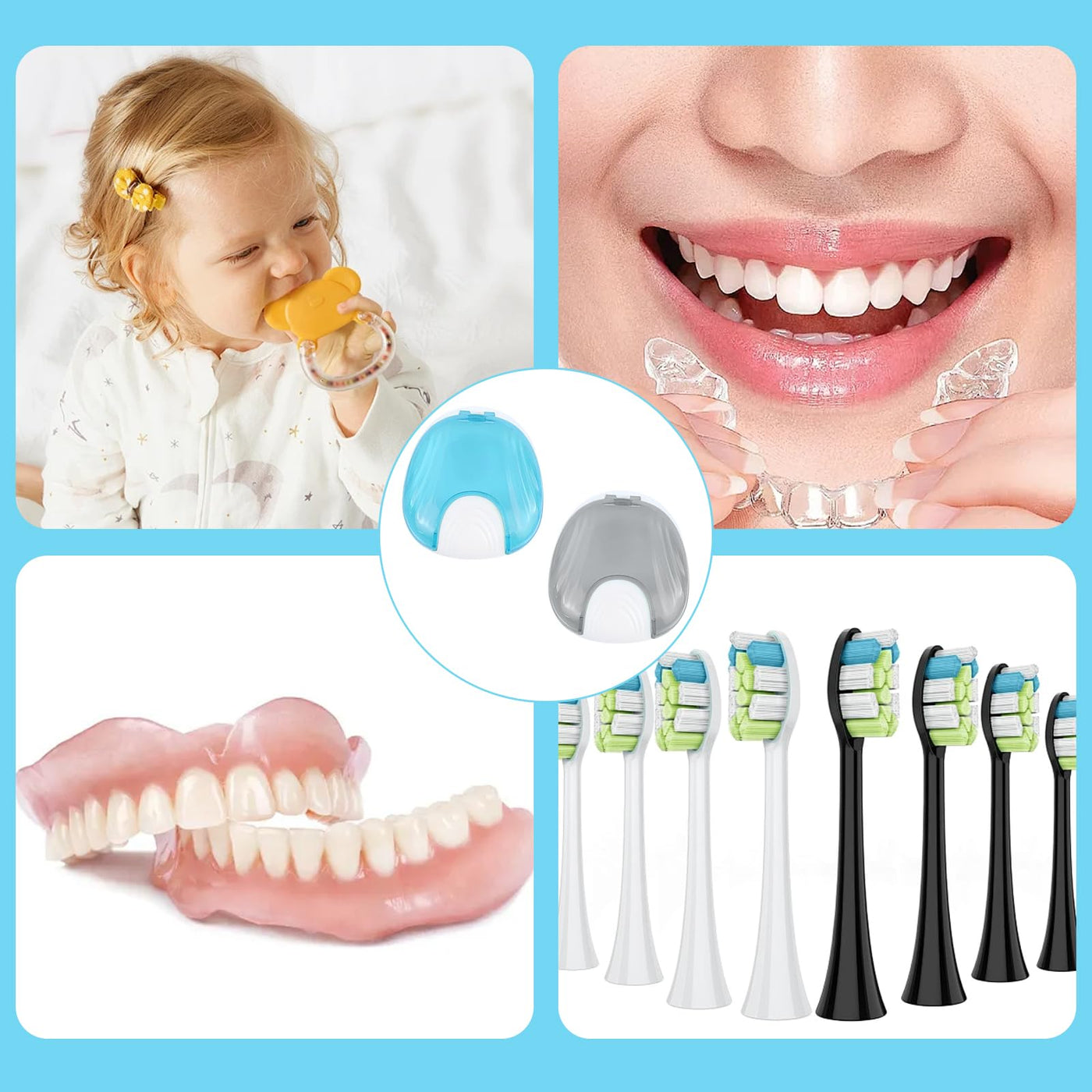 Thoquene 2 pieces dental splint box, box for dentures, portable braces box (light blue, grey)