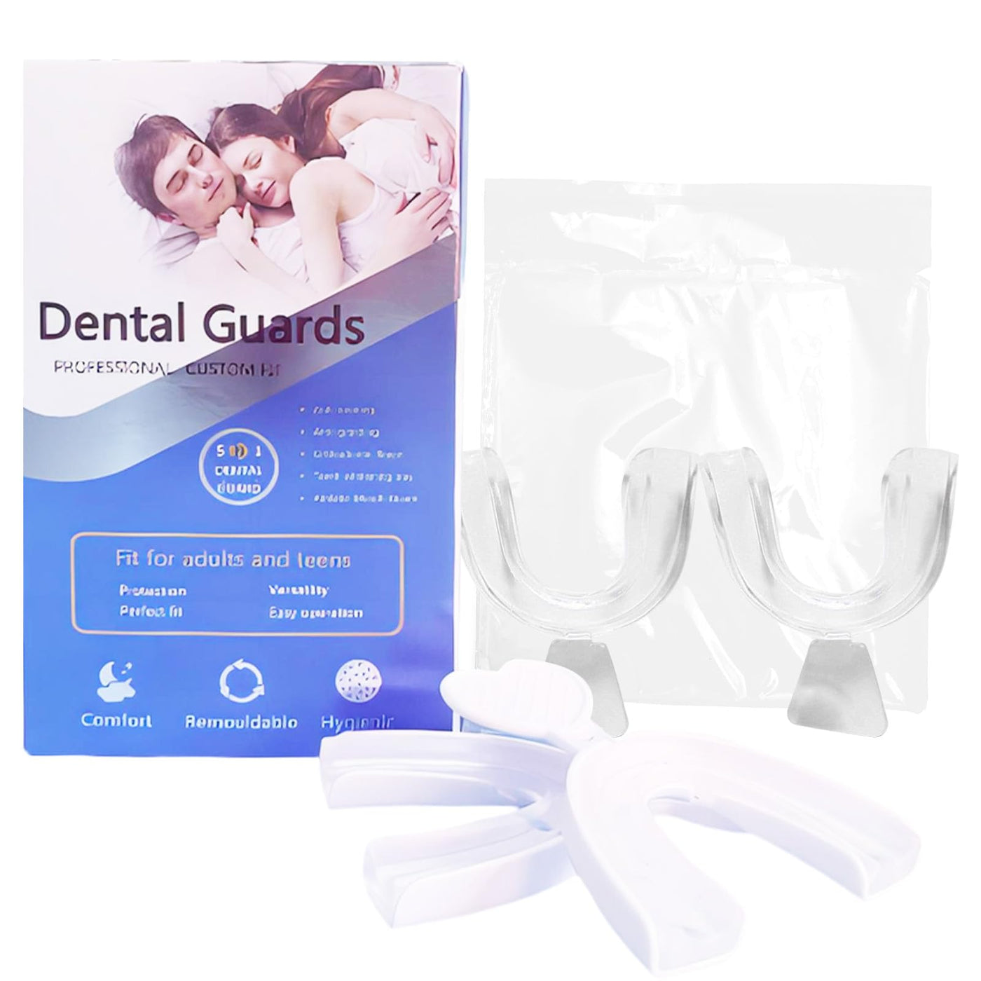 Thoquene Pack of 4 nighttime grinding splints, 2 sizes, grinding splints with whitening tray