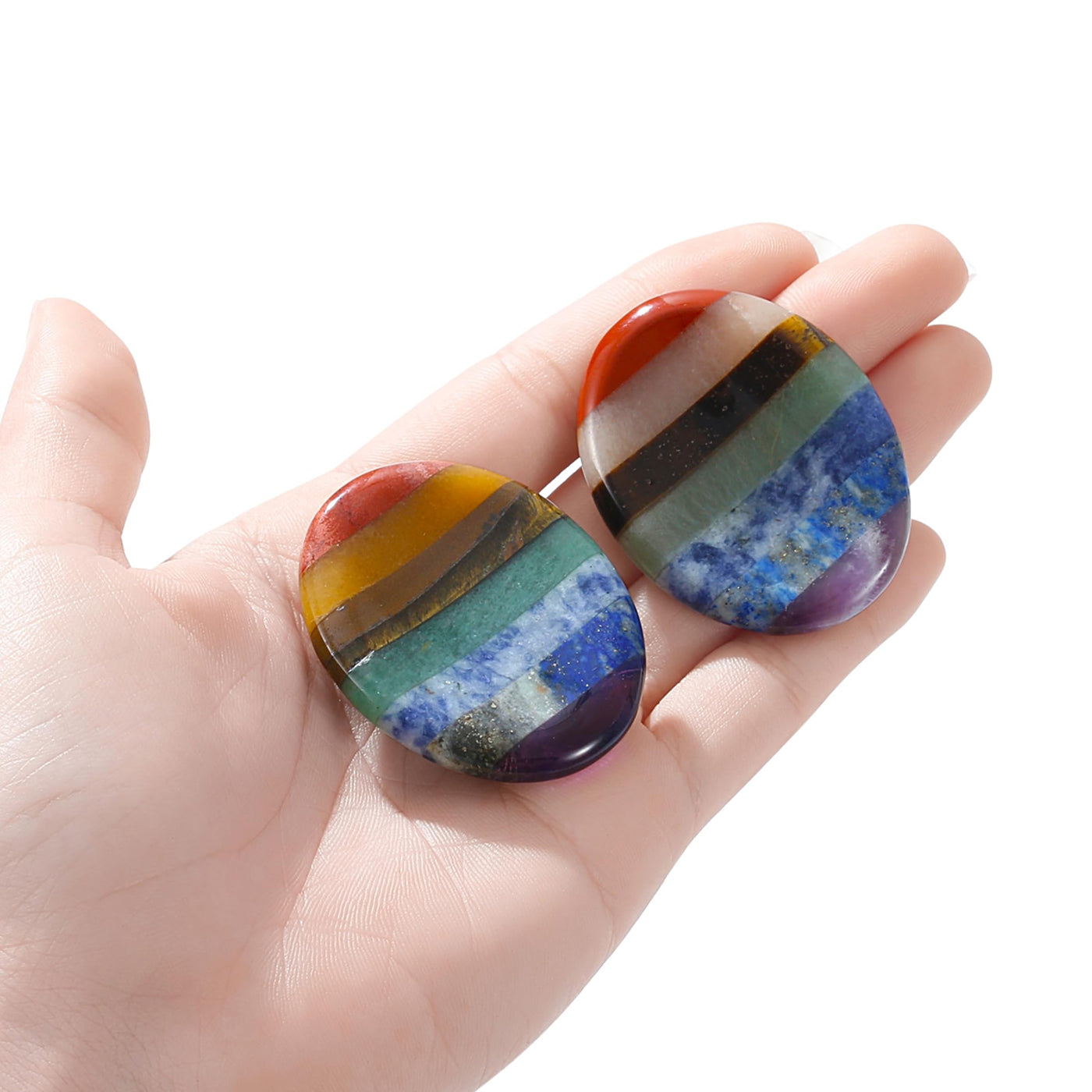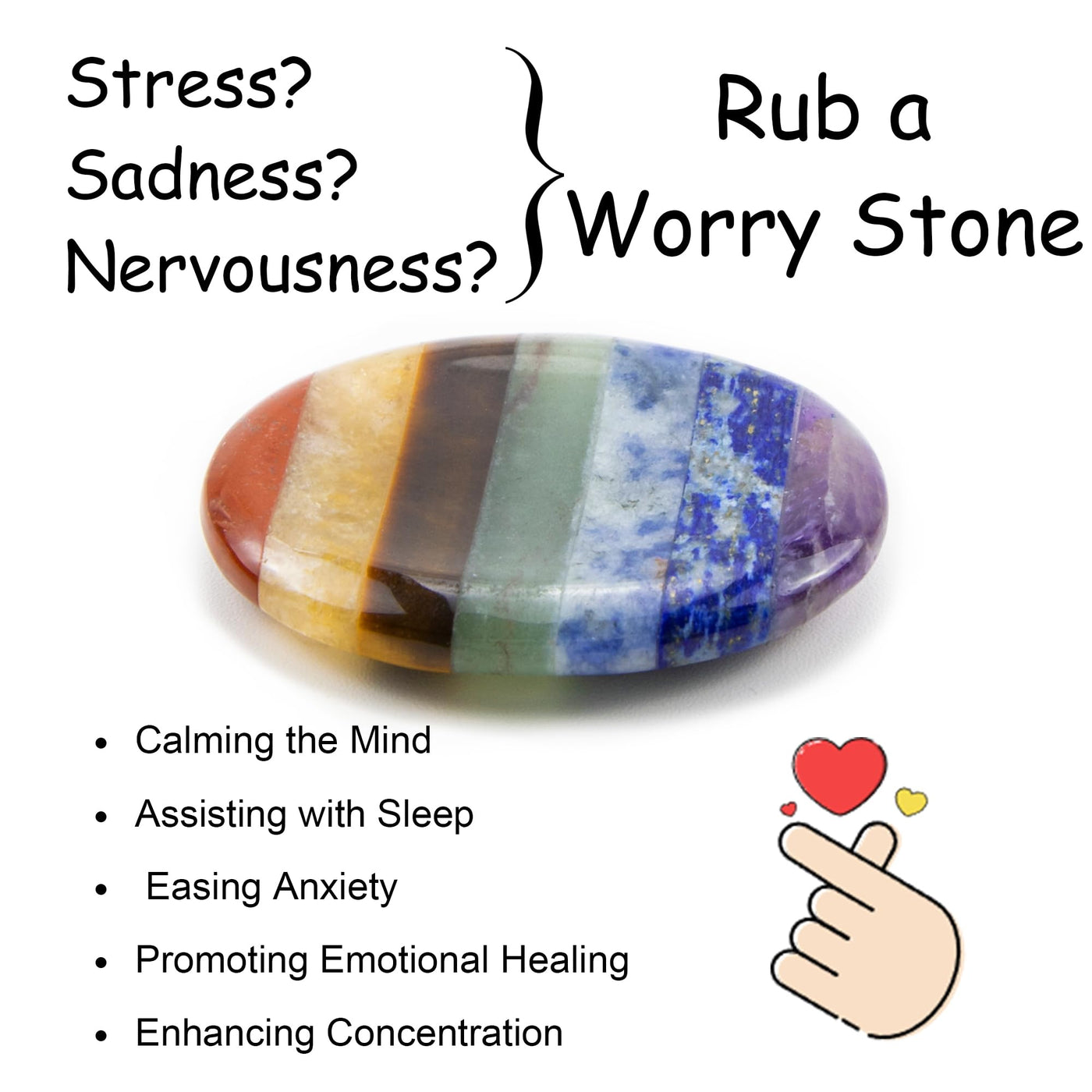 Thumb Worry Stone Crystals and Healing Stones for Anxiety Sensory 7 Chakra Oval Natural Tiny Meditation Accessories Mental Health Gifts Fidget Depression Stress Anxiety Relief Items for Women 7chakra Oval Shaped