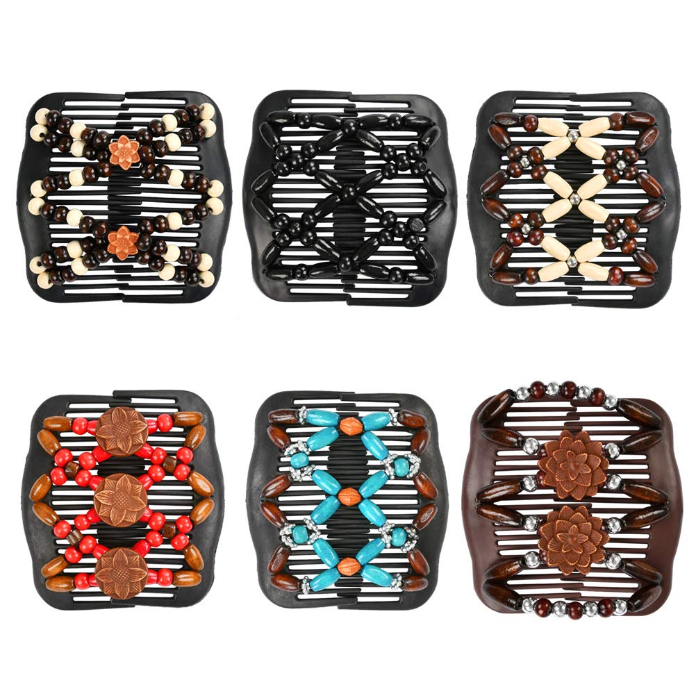 TIMESETL Beads Hair Combs, 6 pcs Elastic Magic Wood Beads Double Hair Comb Clip Stretchy Hair Accessories for Women Girls