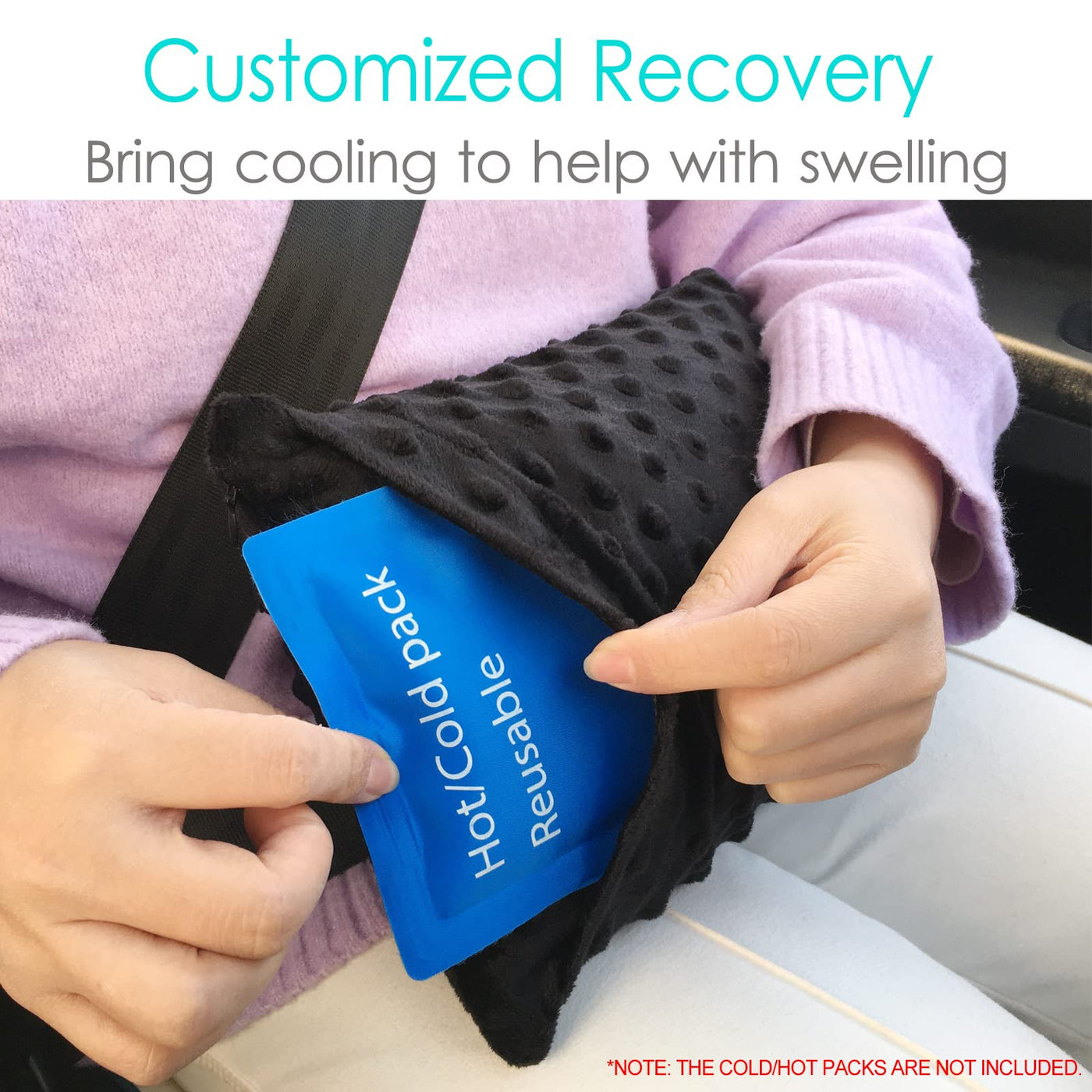 - Excellent & Comforting Choice for Abdominal Surgery Nice item for abdominal surgery. Thick, soft, nice quality minky dot material. Available in several colors. Adds needed support and stability. It has a little pocket for you to insert cold or hot pack into, the pocket isn't huge, but it can easily hold an ice pack. You can also use the pocket to hold your phone, chapstick, and other small things that you want to keep up with. *NOTE: The cold/hot packs are not included.