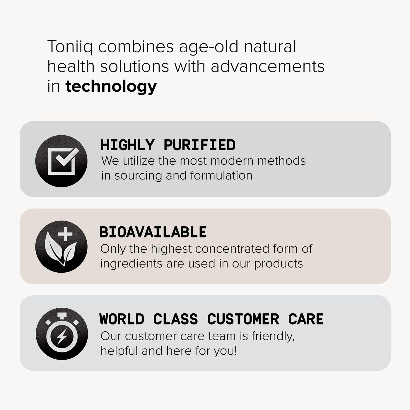 - Quality, First, and Foremost - Toniiq products are produced in a GMP-certified, state-of-the-art manufacturing facility right here in the USA.