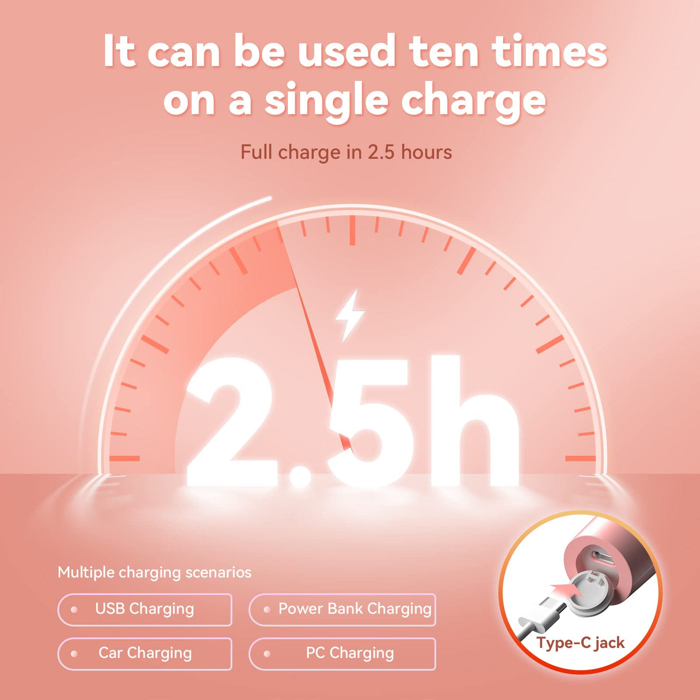 - USB portable charging:Teeth Polisher Electric Professional is Type-C socket USB charging, can be applied to rechargeable batteries, car, PC side charging, charging once 2.5 hours, can be used more than 10 times
