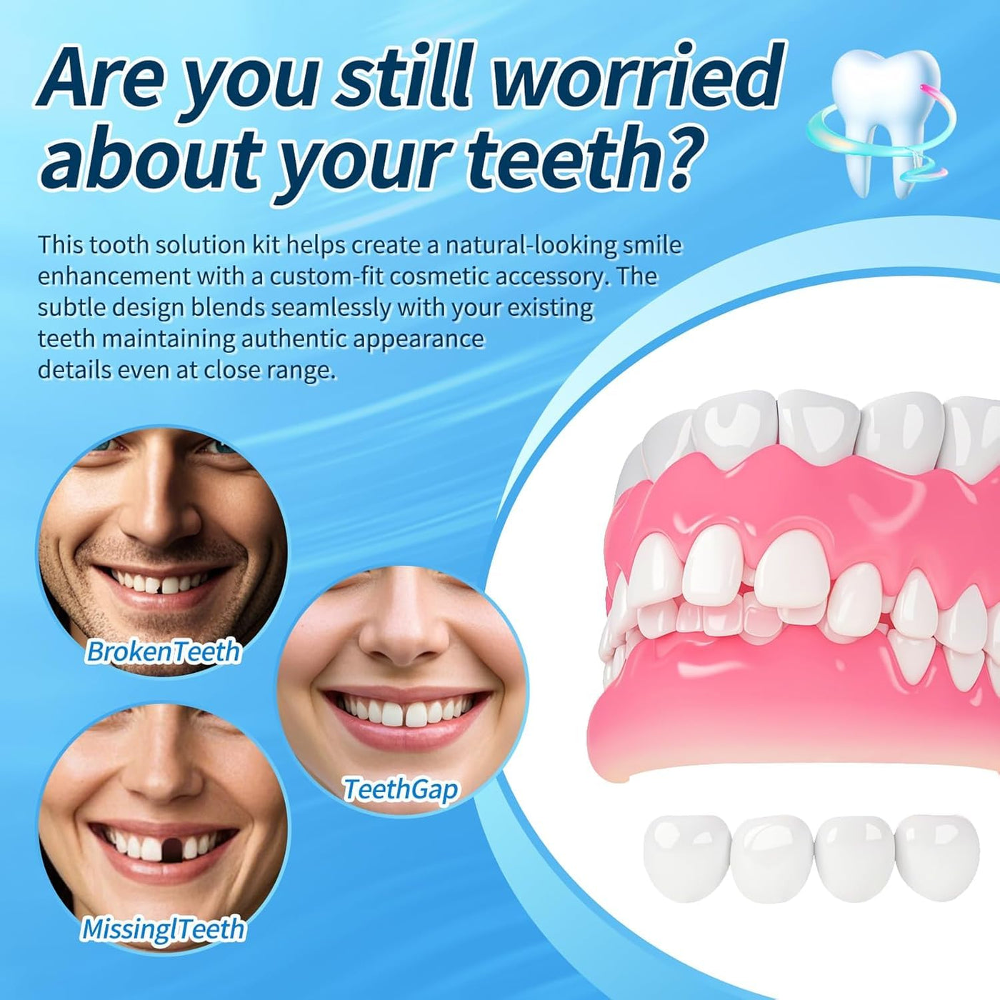 - Improve your smile: Our tooth repair kit includes false teeth model and thermal beads for a realistic look and feel.make you instant and confident Smiling.Suitable for temporary use.
