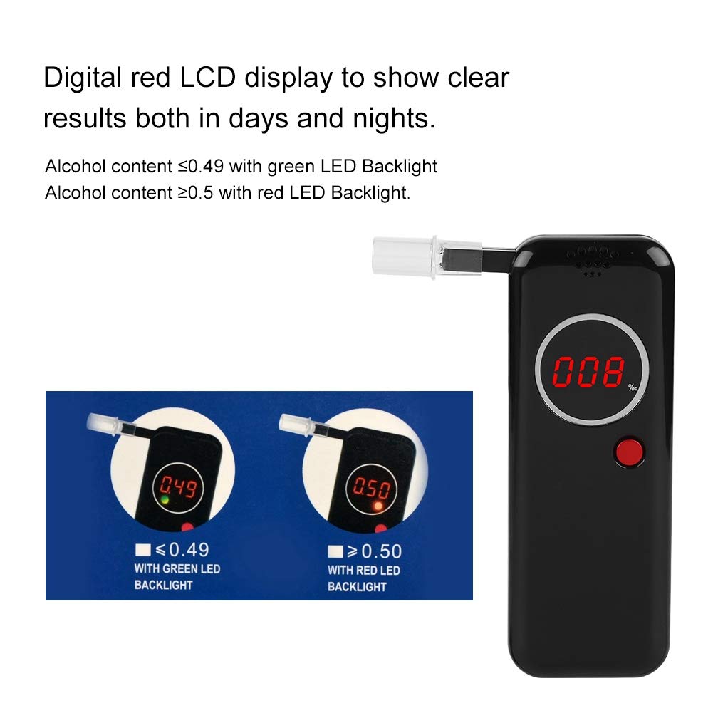 - Clear Display: Red LED display data, visible at night. Alcohol content 0.49 with green LED backlight, alcohol content 0.5 with red LED backlight. Easy to identify.