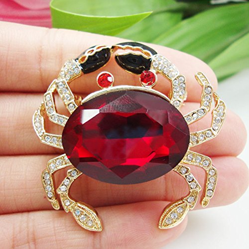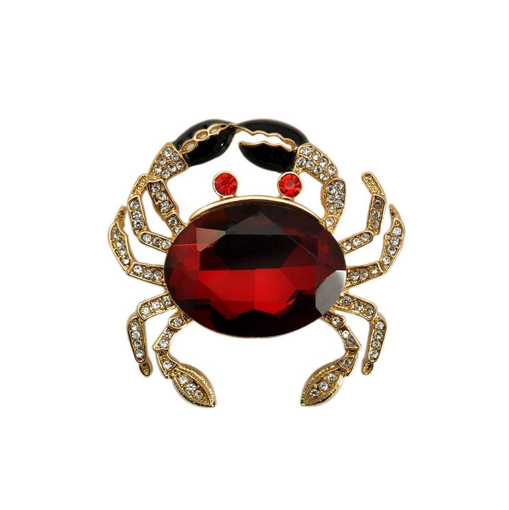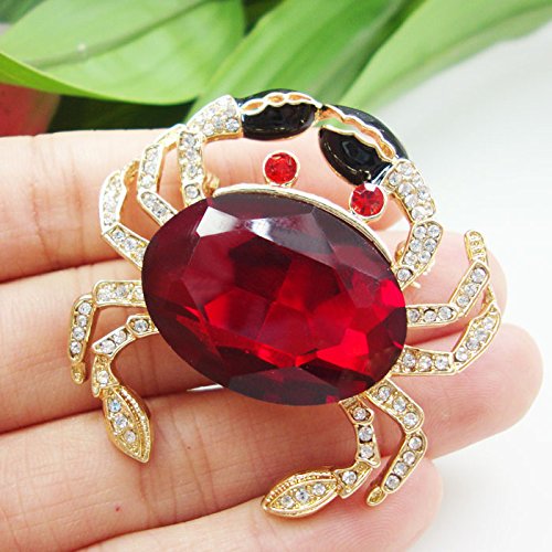 TTjewelry Fashion Jewelry Lovely Red Crab Animal Gold Tone Brooch Pin Rhinestone Crystal