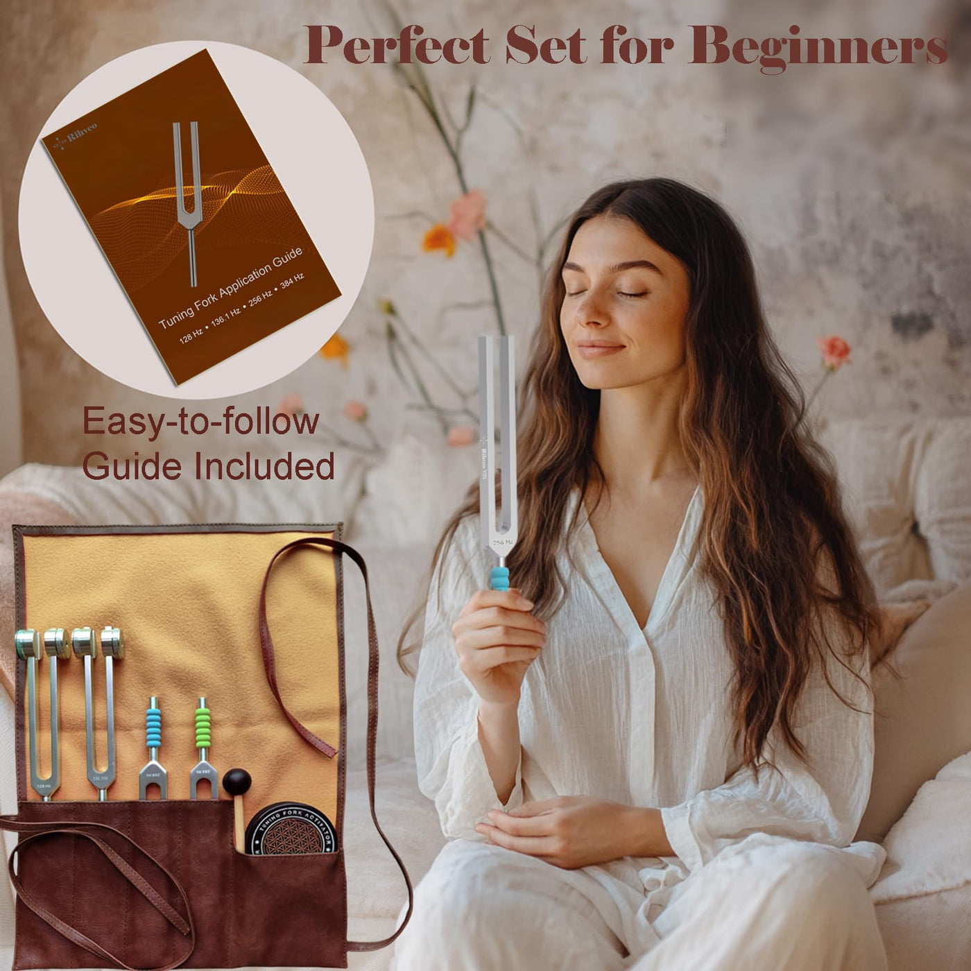 - Complete Kit for Beginners & ProfessionalsThis tuning fork set includes 4 forks (Otto 128Hz, Earth Om 136.1Hz, Yin 256Hz, Yang 384Hz), 2 activators (rubber mallet & hockey puck), 6 colorful grips, a vegan leather carrying pouch, and a step-by-step guideperfect for both beginners and seasoned professionals.