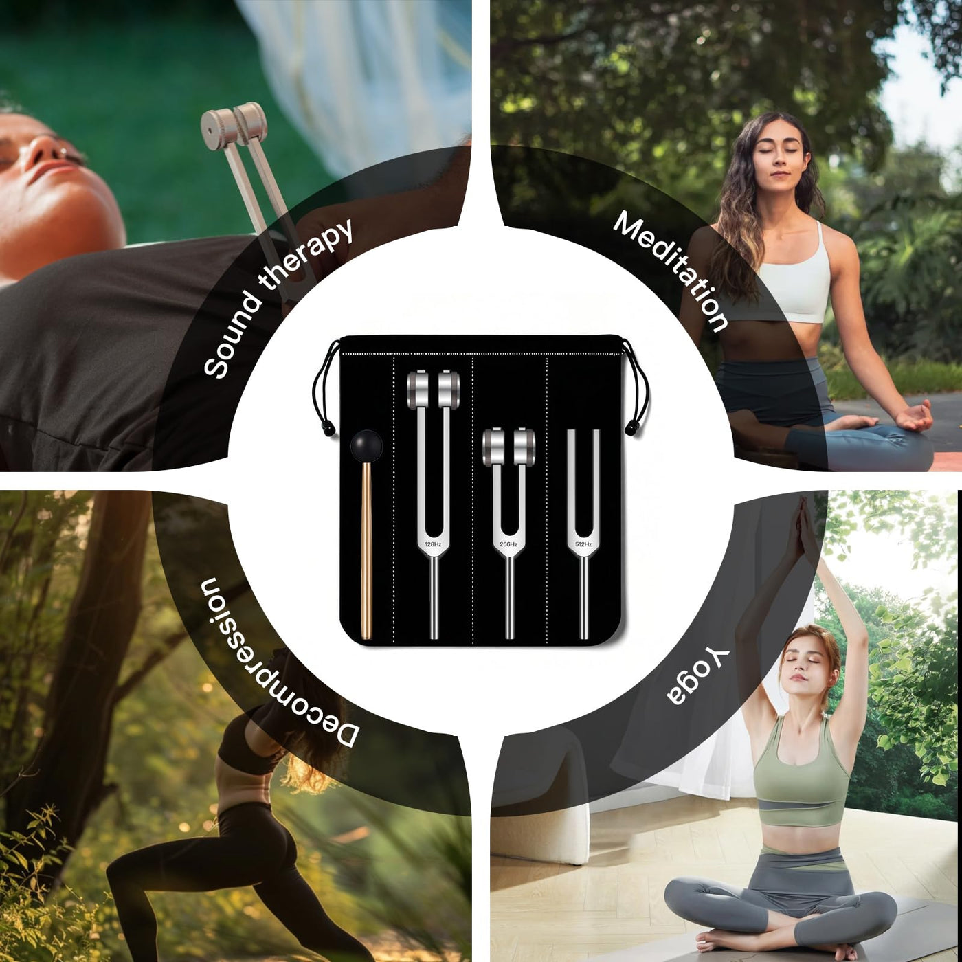 - 3-Frequency Therapeutic Combo:Includes 128Hz, 256Hz, 512Hz forks for targeted energy healing, chakra alignment, and sound therapy practices.