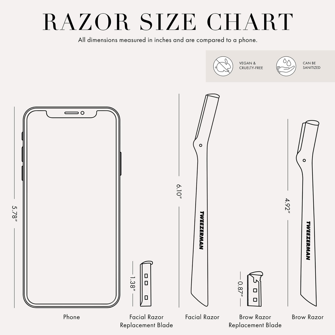 - Brow Razor is perfectly sized to remove hair in small or hard to reach areas. Stainless steel blades are durable and easy to clean.