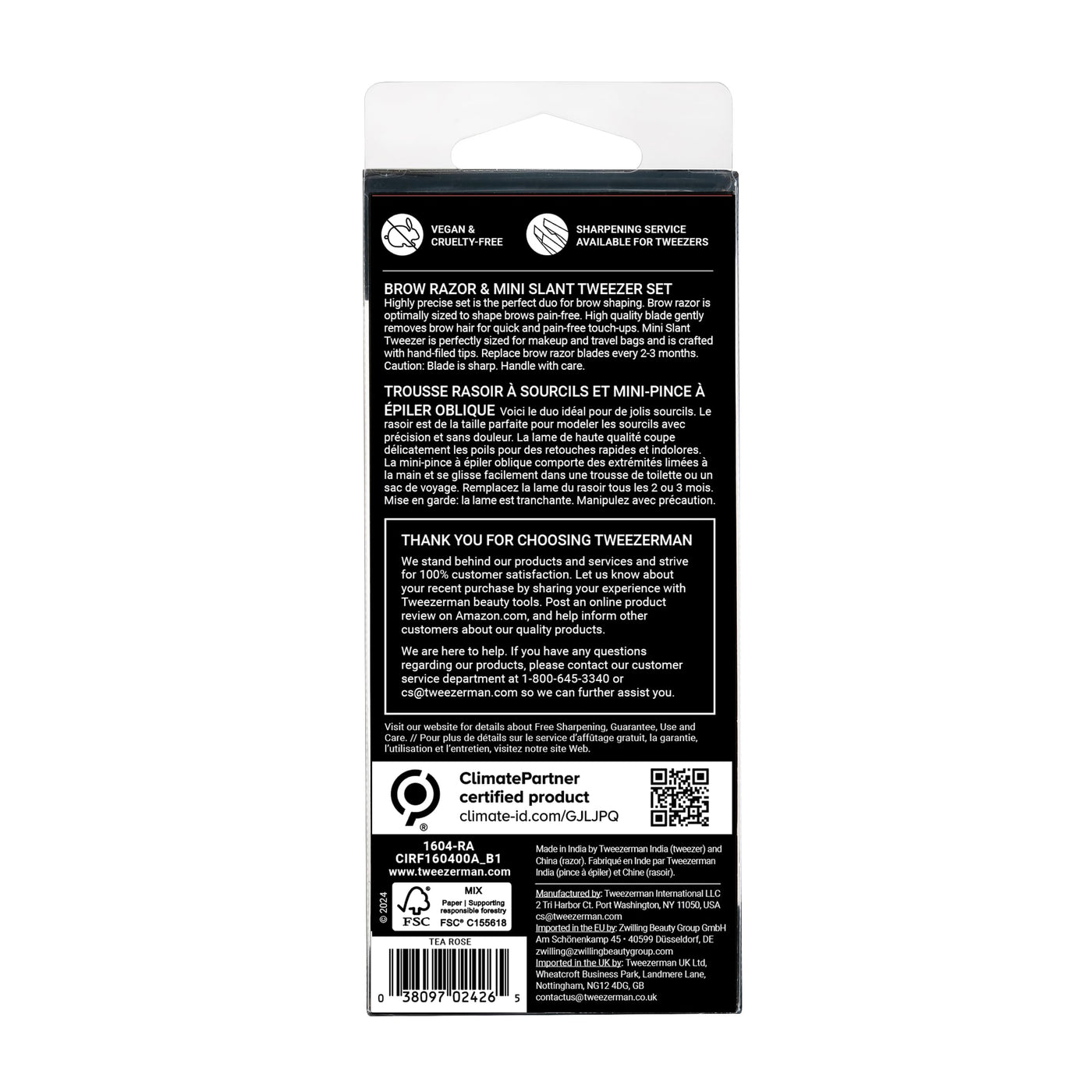 Tweezerman Exclusive Eyebrow Razor & Tea Rose Mini Slant Tweezer Stainless Steel & Tea Rose