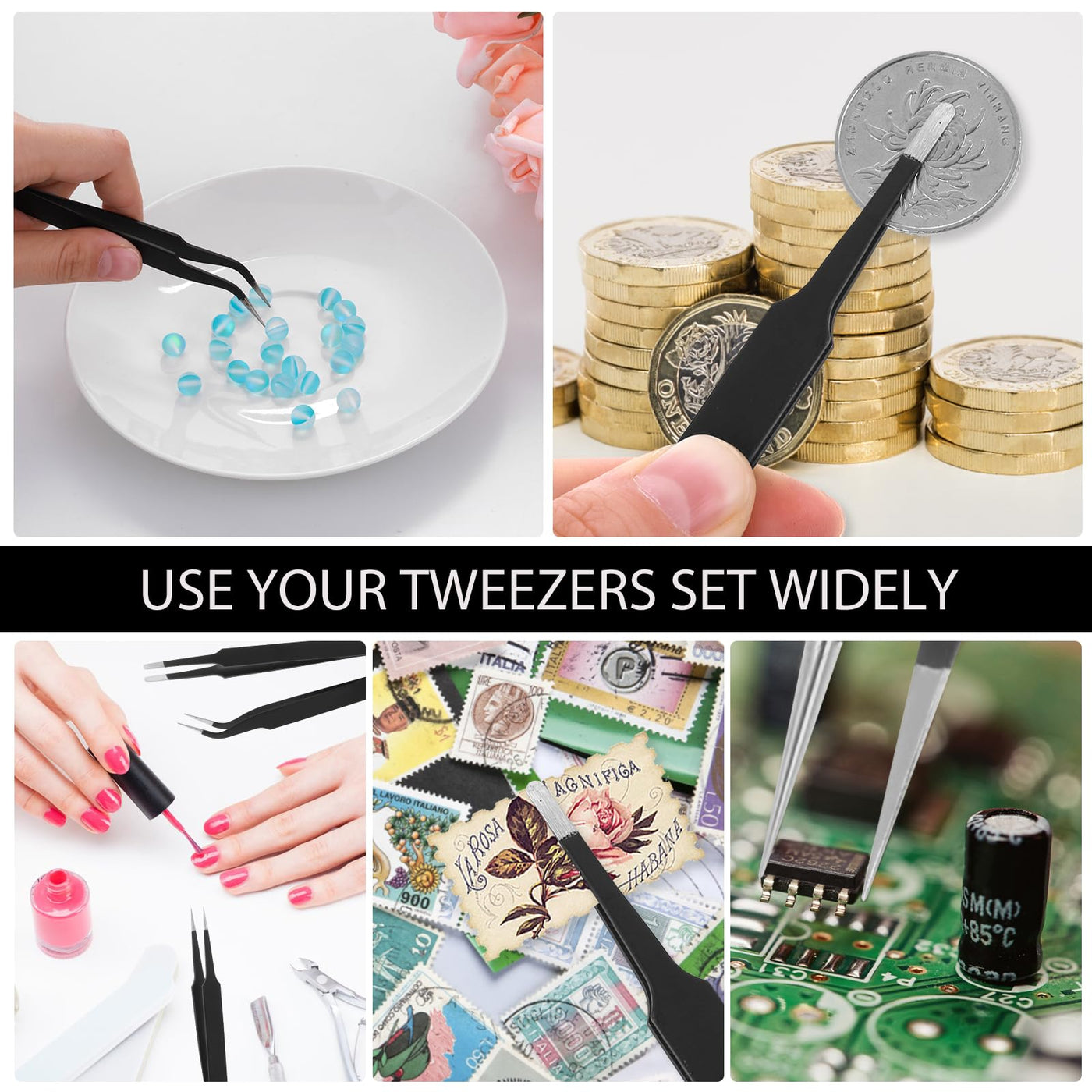 - Easy to Use: These precision tweezers sets are well made and feature sharp tips and protective covers. They are durable and affordable, making them ideal for the electronics, jewelry and craft industries, as well as medical and laboratory work.