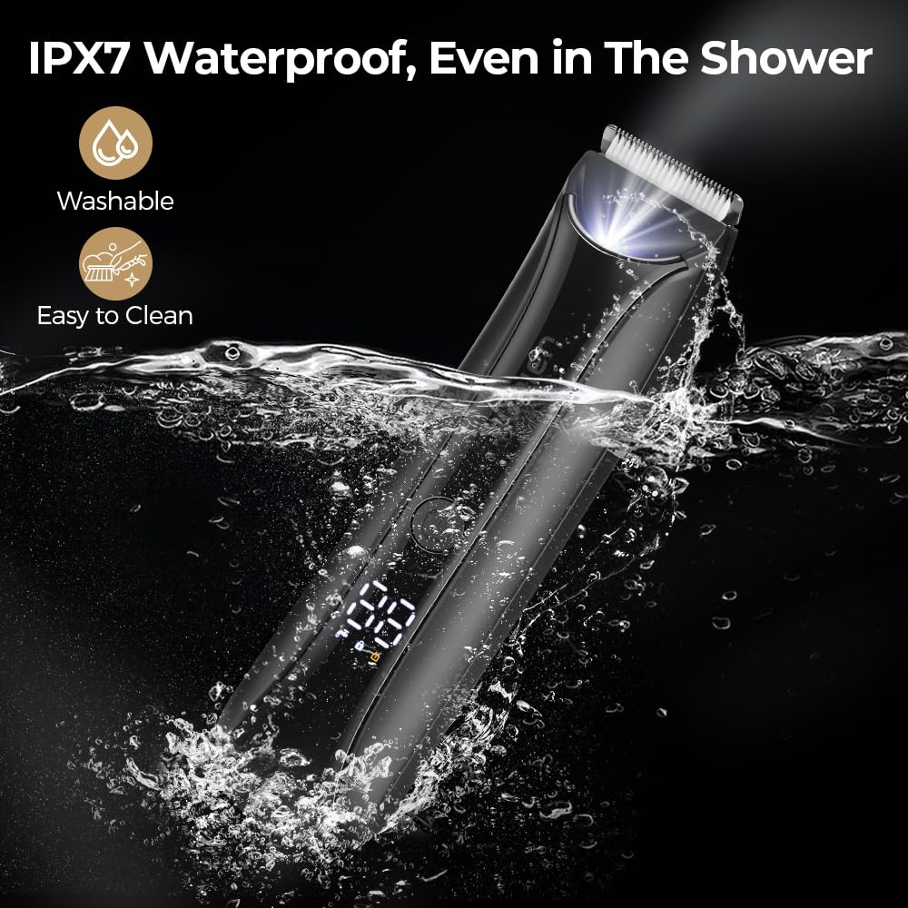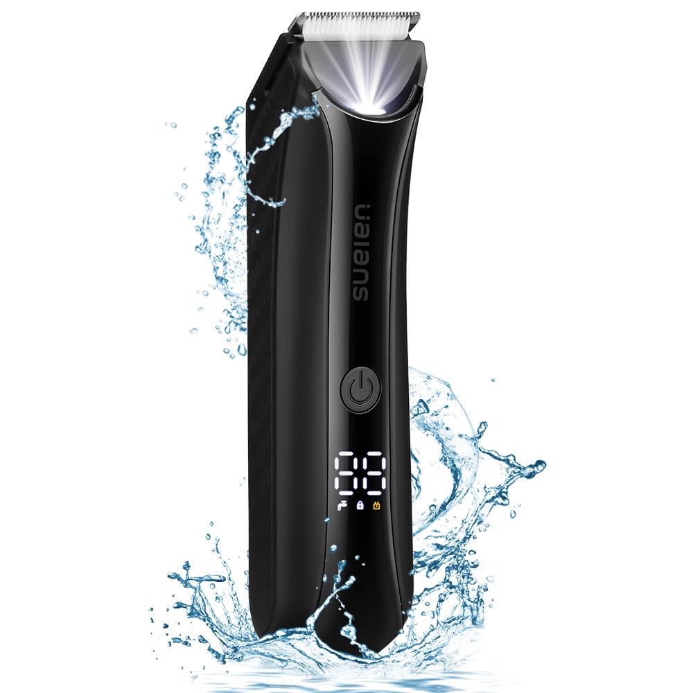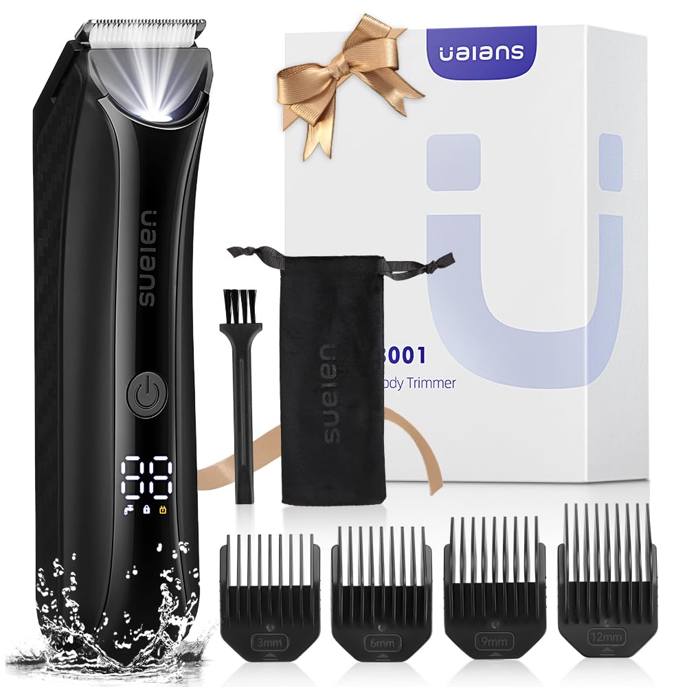 Ualans intimate razor for men, electric body razor for men with LED light and display, IPX7 waterproof body hair trimmer, 100% waterproof including 4 attachment combs, gifts for men