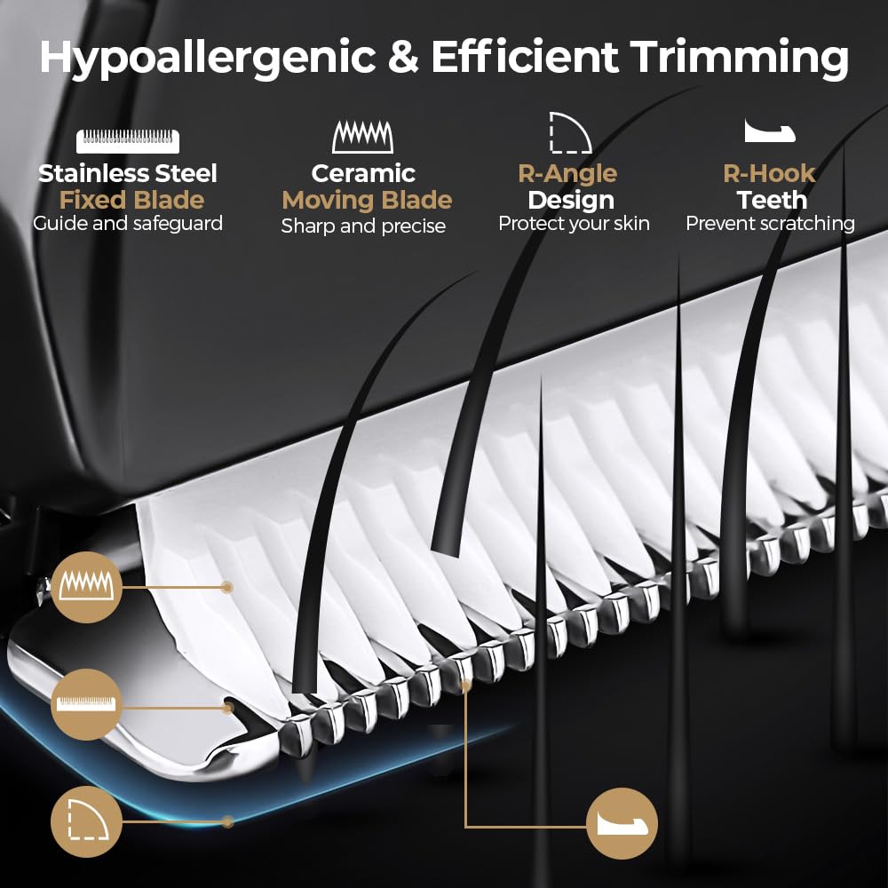 - Hypoallergenic material and scratch-resistant designFixed blade head made of ceramic, hypoallergenic material, as hard as diamond, making shaving easier, cleaner and hypoallergenic. The movable knife with R-angle and barbs cuts efficiently during the shaving process, effectively prevents scratches and does not pull hair