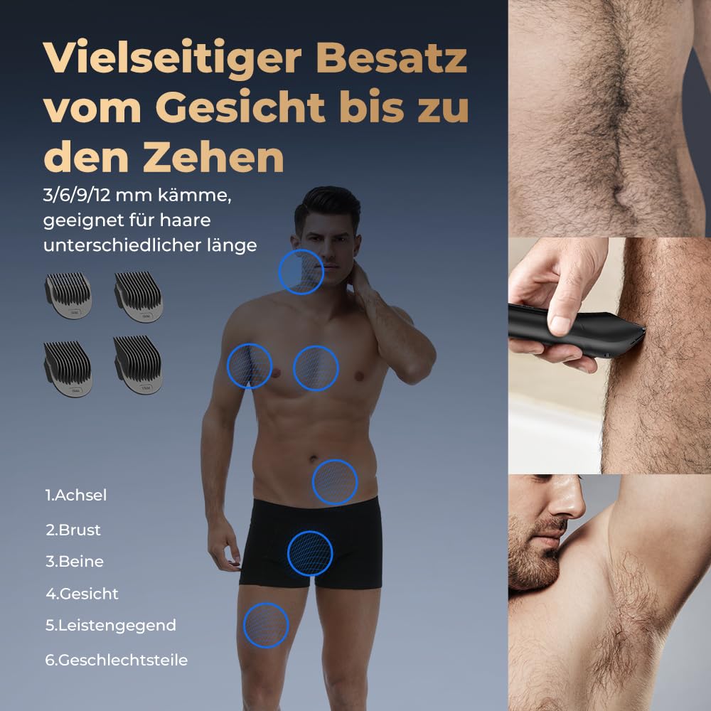 Ualans Intimate Razor for Men, Improved USB C Multifunctional Body Hair Trimmer Men with LED Light and Display, IPX7 Waterproof - Wet and Dry, 4 Attachment Combs, Gift for Men