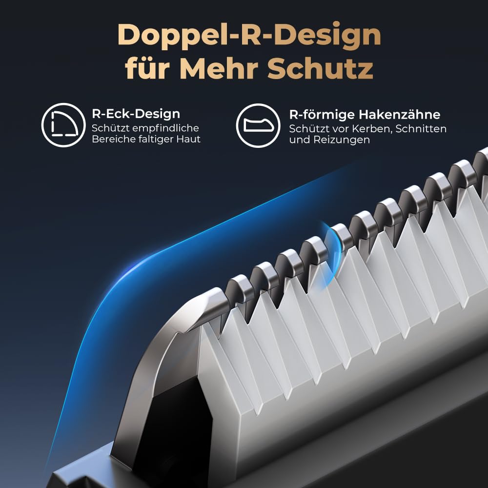 - High performance ceramic blade, Improved blade width The private trimmer for men has improved the width of the ceramic blade, which increases the amount of hair and provides a quick, efficient and clean shave. The safety blade has an R-angle design to protect the folded skin in sensitive areas and effectively prevent scratches. 4 comb teeth with adjustable length (3, 6, 9, 12mm) to meet the cutting needs of different lengths