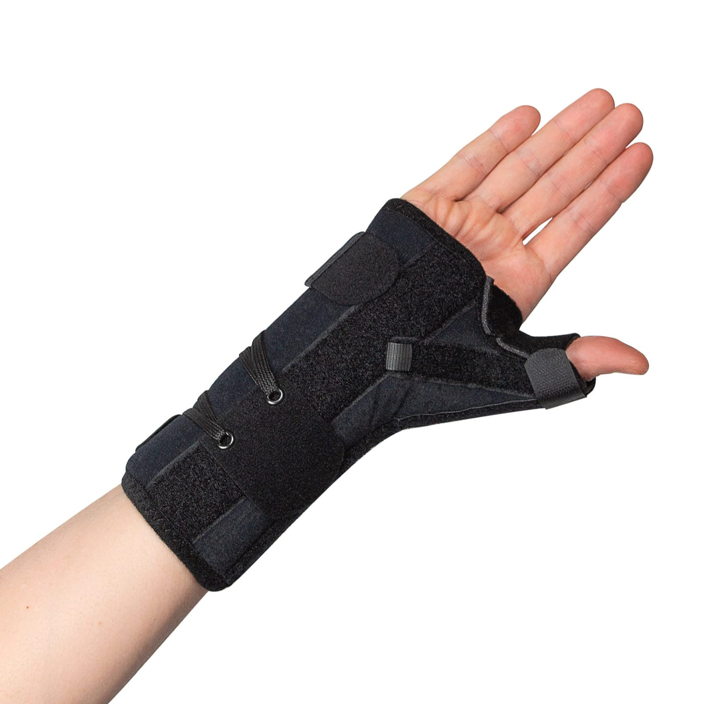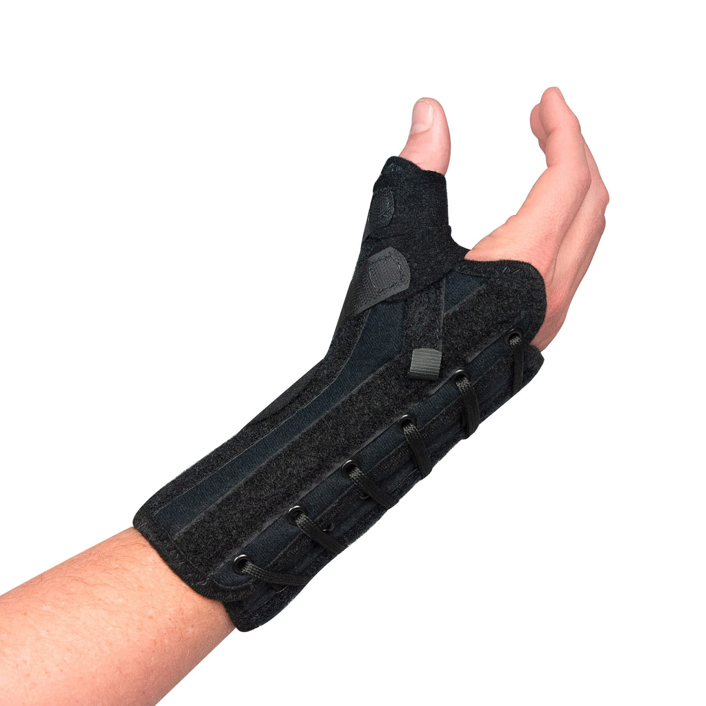 - Custom Fit With Lacing System & Overlapping Edges: This thumb stabilizer brace features adjustable lacing pull tabs and overlapping edges to deliver a secure, contoured fit across different anatomies; for both clinical and home care settings