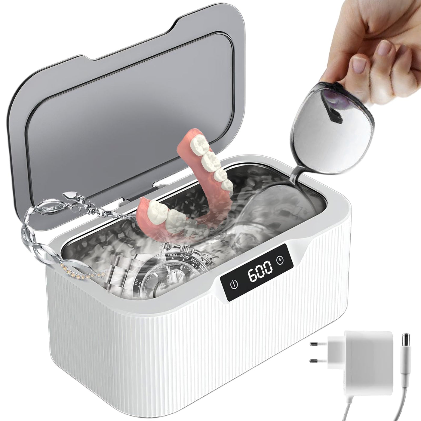 - Versatile, easy to use - The ultrasonic cleaning device is suitable for cleaning jewelry, glasses, sunglasses, watches, razor heads, dentures, braces, cutlery, coins and much more. Ultrasonic cleaner is easy to use - just add water and detergent, start and save time.