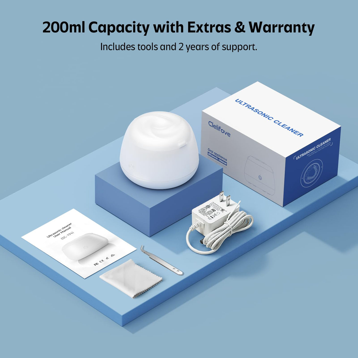 - Compact and Quiet DesignThe 200ML pod is ideal for cleaning one item at a time. Its low-noise performance (under 45dB) and travel-friendly size make it great for home or on-the-go use.