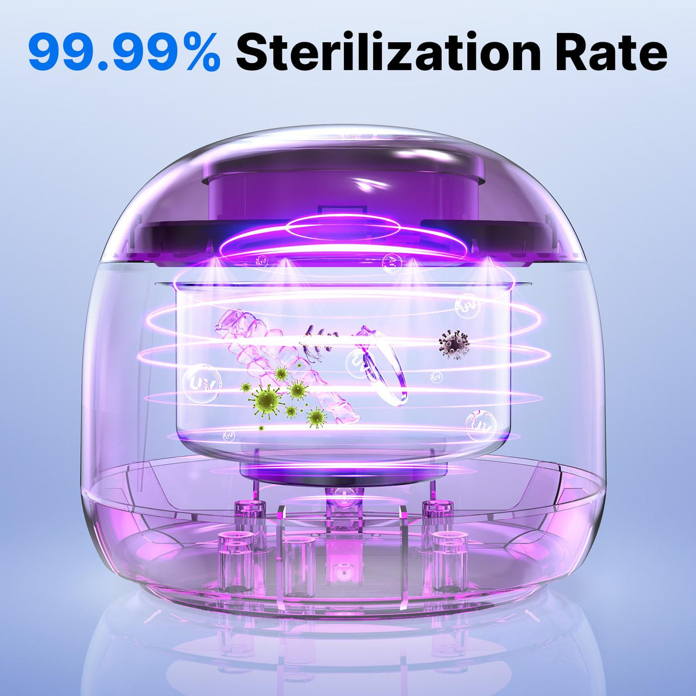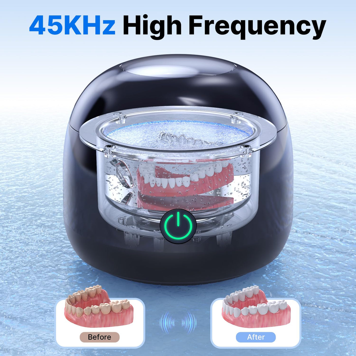 - DEEP CLEANINGThe retainer cleaner uses 45KHz ultrasonic waves to effectively remove food bits, stains, and plaque from all sides. It has 4 UV lamps that sterilize your dental appliances and eliminate odors while cleaning.
