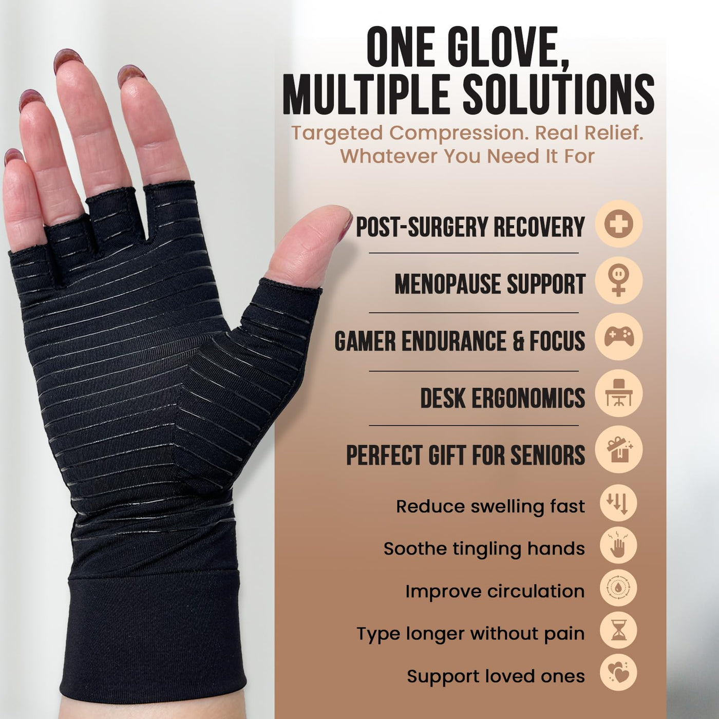 UPDATED Copper Compression Gloves for Arthritis, Carpal Tunnel, Post-Surgery Recovery, Menopause Relief, Gaming, Office Typing – Fingerless Support Gloves for Pain, Swelling Circulation, Medium 2 Pack
