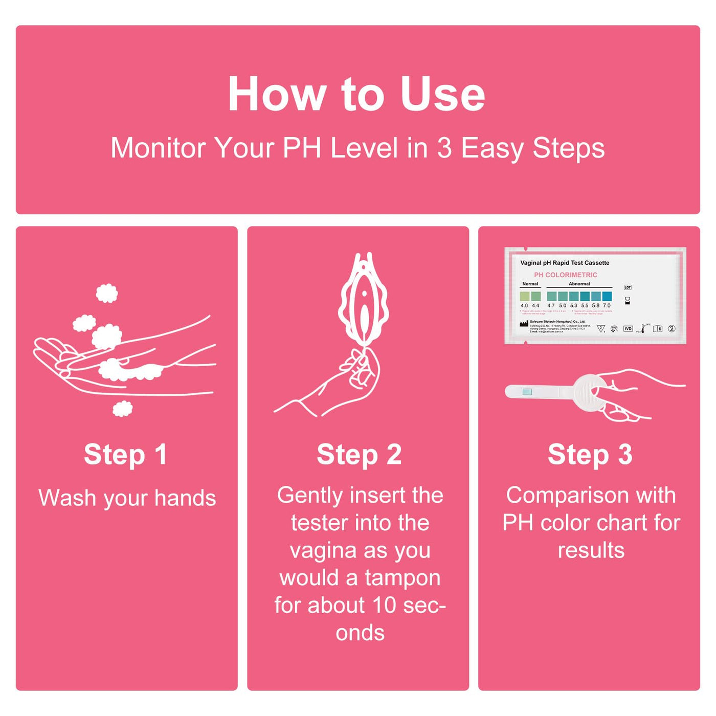 - Individual Packaging The pH test kit is individually packaged in aluminum foil pouches, which is clean, hygienic and more convenient, you can use the vaginal pH test strips at home directly without worrying about the test failing due to moisture.
