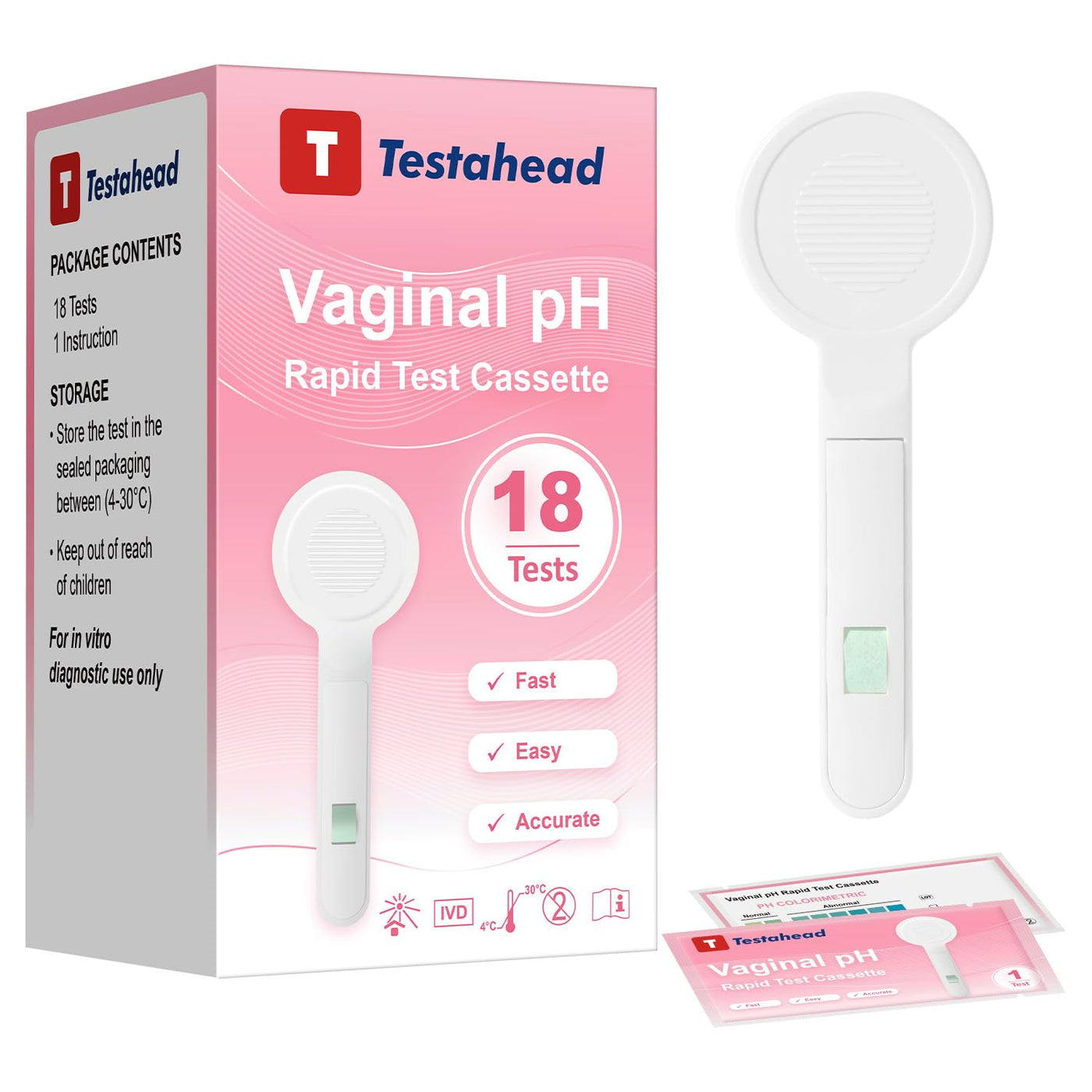 - Designed for womenRound handle design, easy to hold, no need to buy cotton swabs to avoid contamination. The test area is wider and more sensitive than ordinary test strips, and the accuracy of the reading after the tester touches the vagina is over 99%.
