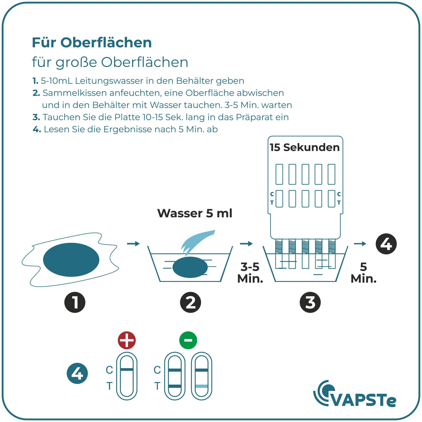 - Includes everything needed for immediate testing: test field / collection container / pipette / disposable gloves / surface sampling pad