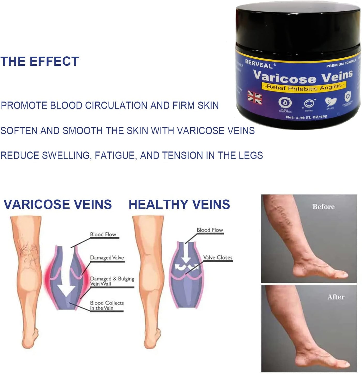 - EFFECTIVEThis cream can help you overcome the discomfort, health risks and swollen appearance of varicose veins. Helps reduce the appearance of varicose and spider veins. blood circulation. Promotes smooth and natural looking skin.