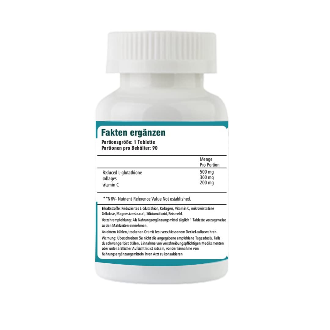 - GLUTATHIONE, COLLAGEN & HIGHEST STRENGTH VITMIN C - Each tablet contains an impressive 1000 mg of premium quality glutathione, collagen and vitamin C. Our easy-to-swallow dietary supplement is non-GMO and free from allergens such as gluten, wheat, lactose and nuts.