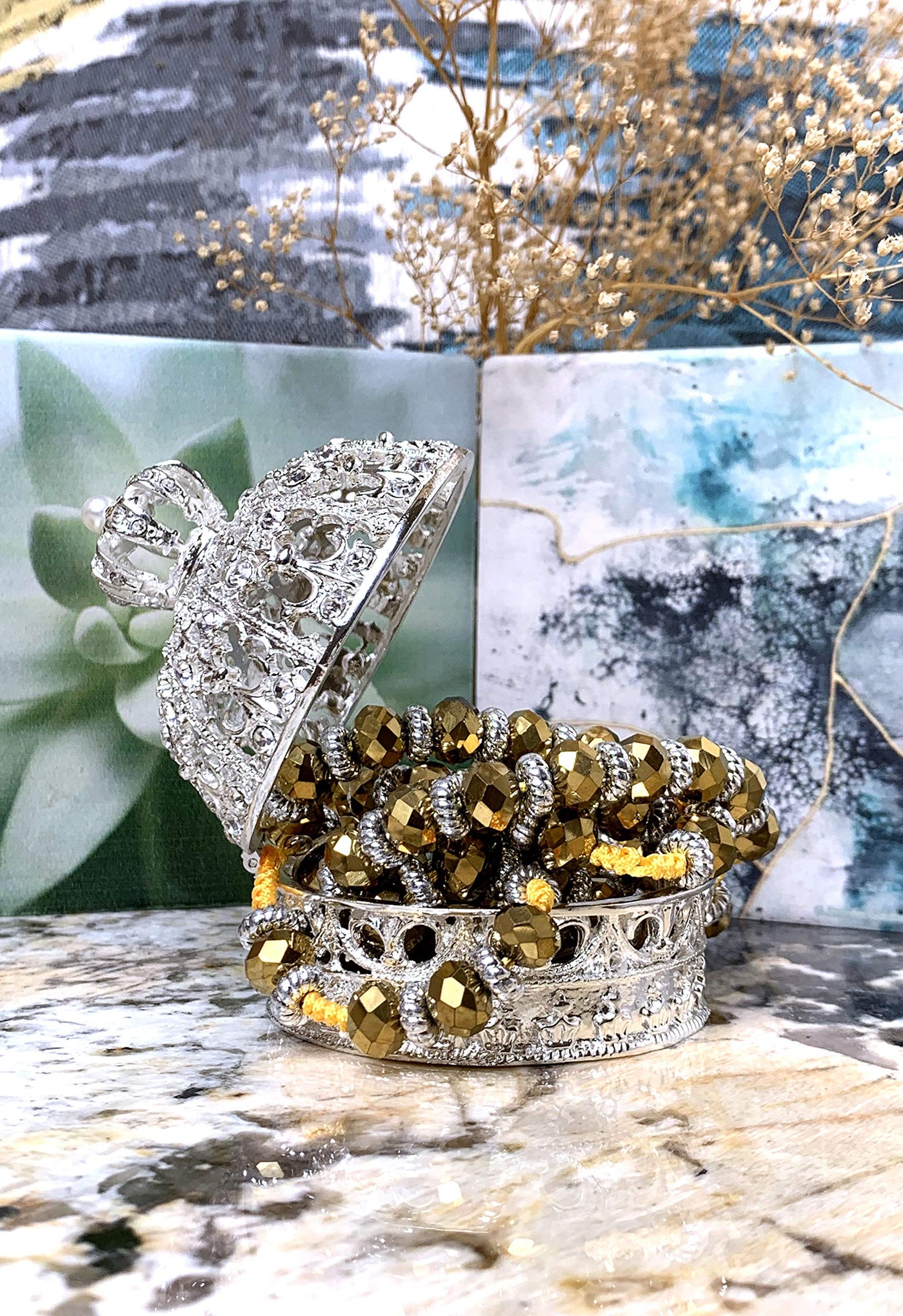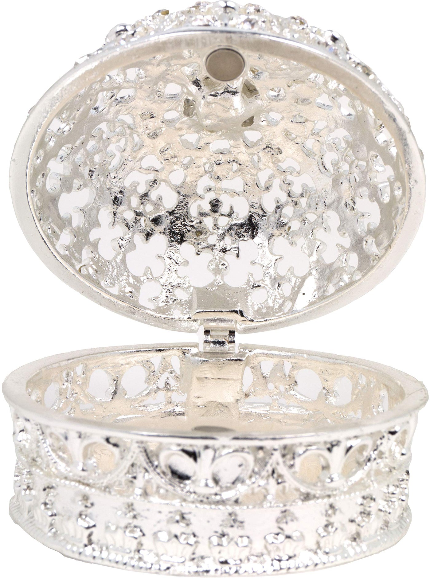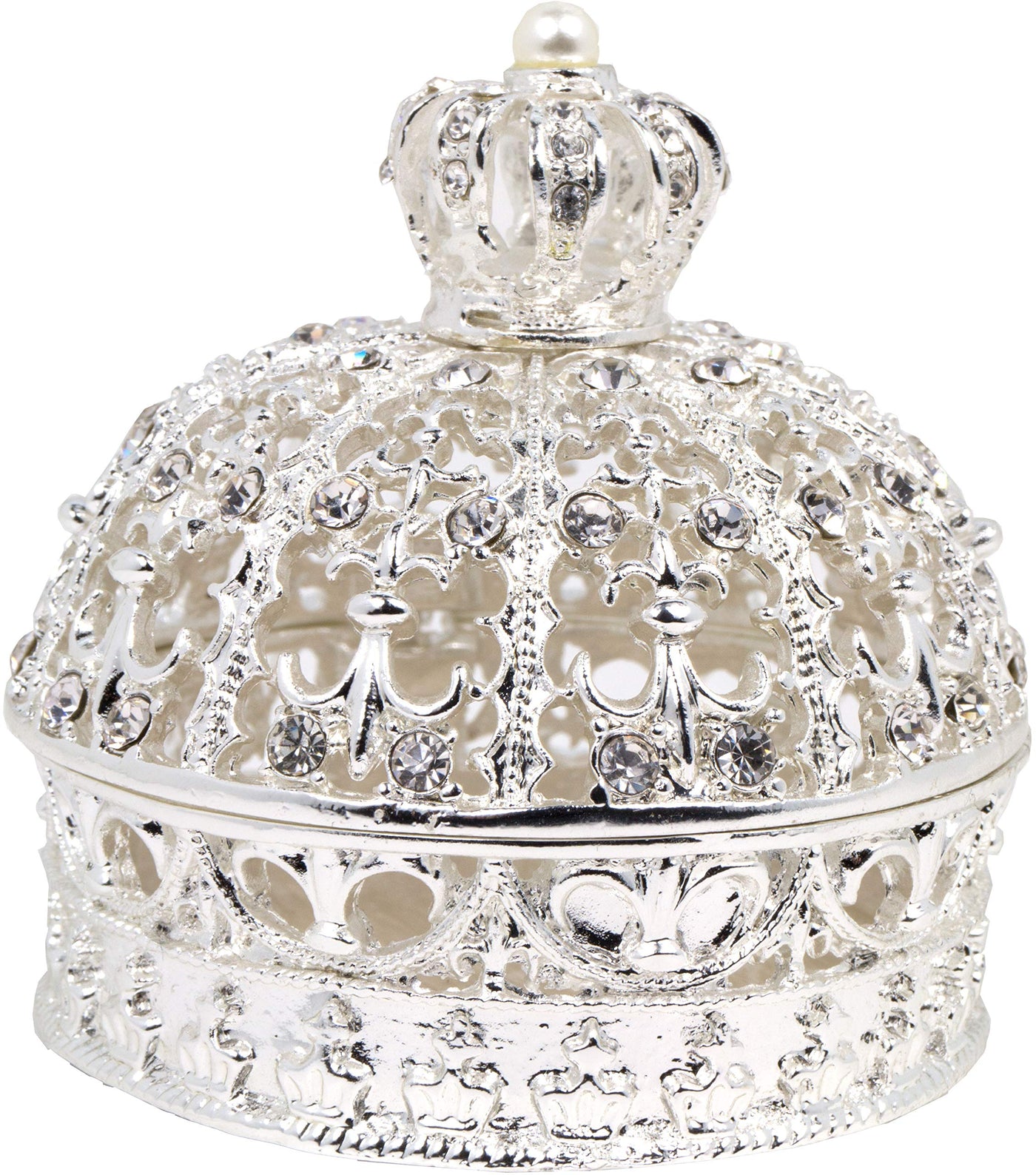 VI N VI Silver Rhinestone Pearl Royal Crown Jewelry Box, Trinket Box | Beautiful Collectible Figurine and Decorative Jewelry Display, Holder, and Organizer